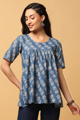 This one’s great for your black denim. Coming with the blue block print design, this half sleeve top is versatile enough to be used with any jewellery. Wear it to college or office any day of the week for a simple, elegant yet Indo-Western vibe. You can also consider wearing some light makeup to enhance your look.
