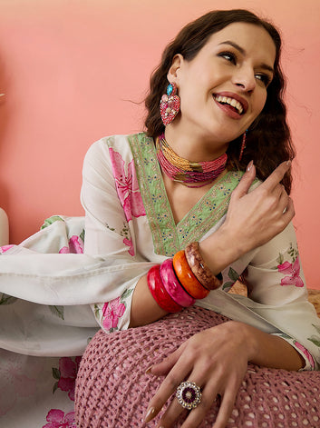 Ethnic sets are designed to be highly versatile. You could wear them to college, work or any casual event, all the while looking ravishing and beautiful with your outfit. You can choose to accessorize your ethnic sets as per your choice for the best results.