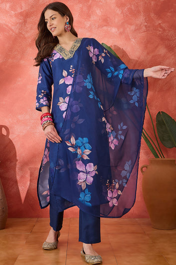 Silk-based salwar suit sets have always remained in vogue. You can choose a kurta pant set with dupatta party wear for any special occasion. Such salwar suit sets are super-comfortable and fit quite well.
