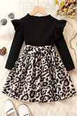 Dress your little girls with this black printed knee length dress from Fashion Dream. Pair it up with a cute hair accessory and closed sandal for the best friend's birthday party. This kids frock with its classy color gives a fun feel to your little diva. This RIB lycra dress is perfect for your girl's daily adventures. This western wear frock features round neck, ruffled full sleeves flared silhoutte and Animal print over hem that gives a perfect look to this dress which will make your girl more stylish. This midi dress adds to its beauty will surely add charm to your girls look. Along with the dress, you can style your girls with their favorite side bag and add something new to your girls daily look. "Note: The accessories and props used in these photoshoots are for aesthetic purposes only and may not be included in the final product or service."