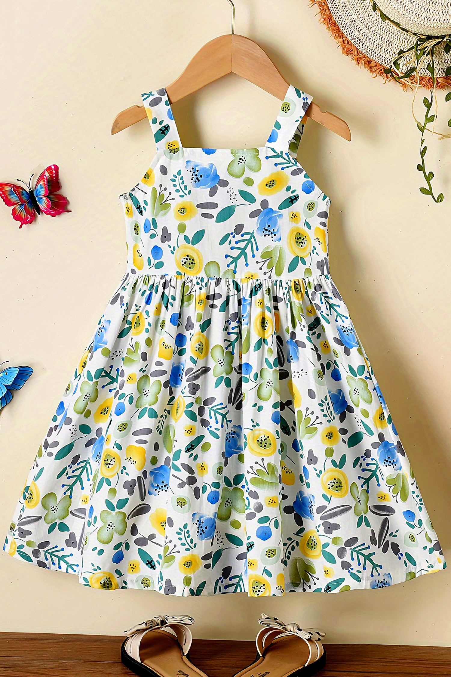 Baby Girl's Multicolor cotton Bland Floral Printed Fit & Flare Casual Dress