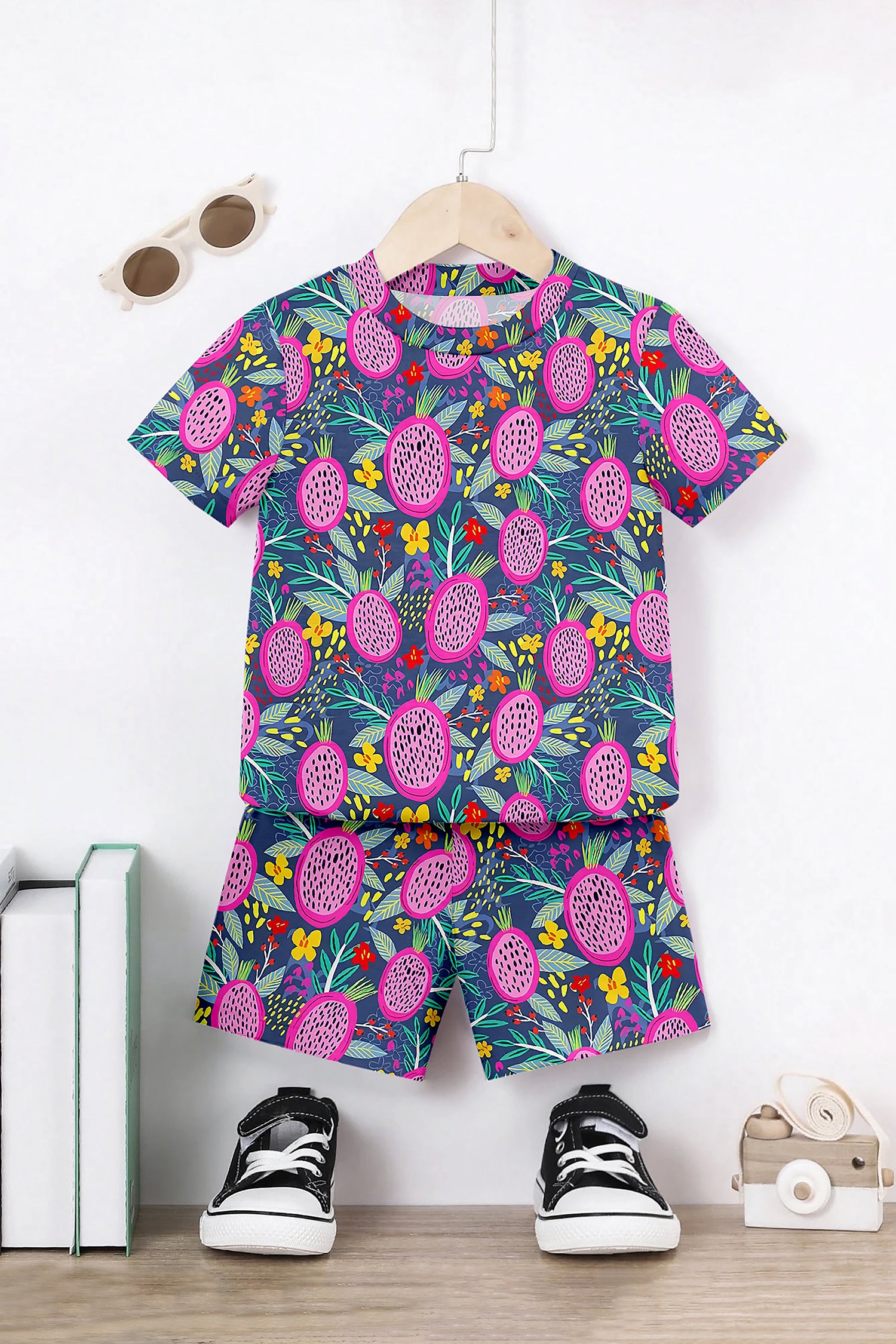 Keep your little one stylish and comfortable with this blue colored boys' coordinate set from Fashion Dream. This set is crafted from soft and breathable polyester fabric to make him feel comfortable all day long. The printed t-shirt designed with half sleeve, round neck and pull on closure for easy wear. This set comes along matching printed pants with fully elasticated waistband for perfect look. The all over print adds a modern, versatile touch, making it perfect for both casual outings and special occasions. Pair it with casual foot wear to give him cheerful and trendy look for any event. "Note: The accessories and props used in these photoshoots are for aesthetic purposes only and may not be included in the final product or service."