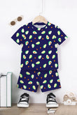 Boys Dark Blue Lycra Blend Printed T-shirt and Short Clothing Set