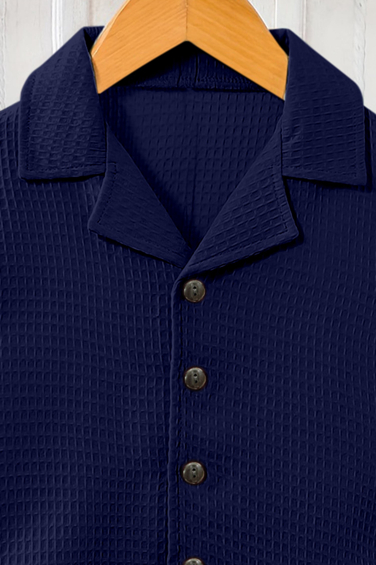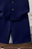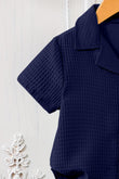 Boys Navy Blue Cotton Blend Solid Shirt With Short Pant Set