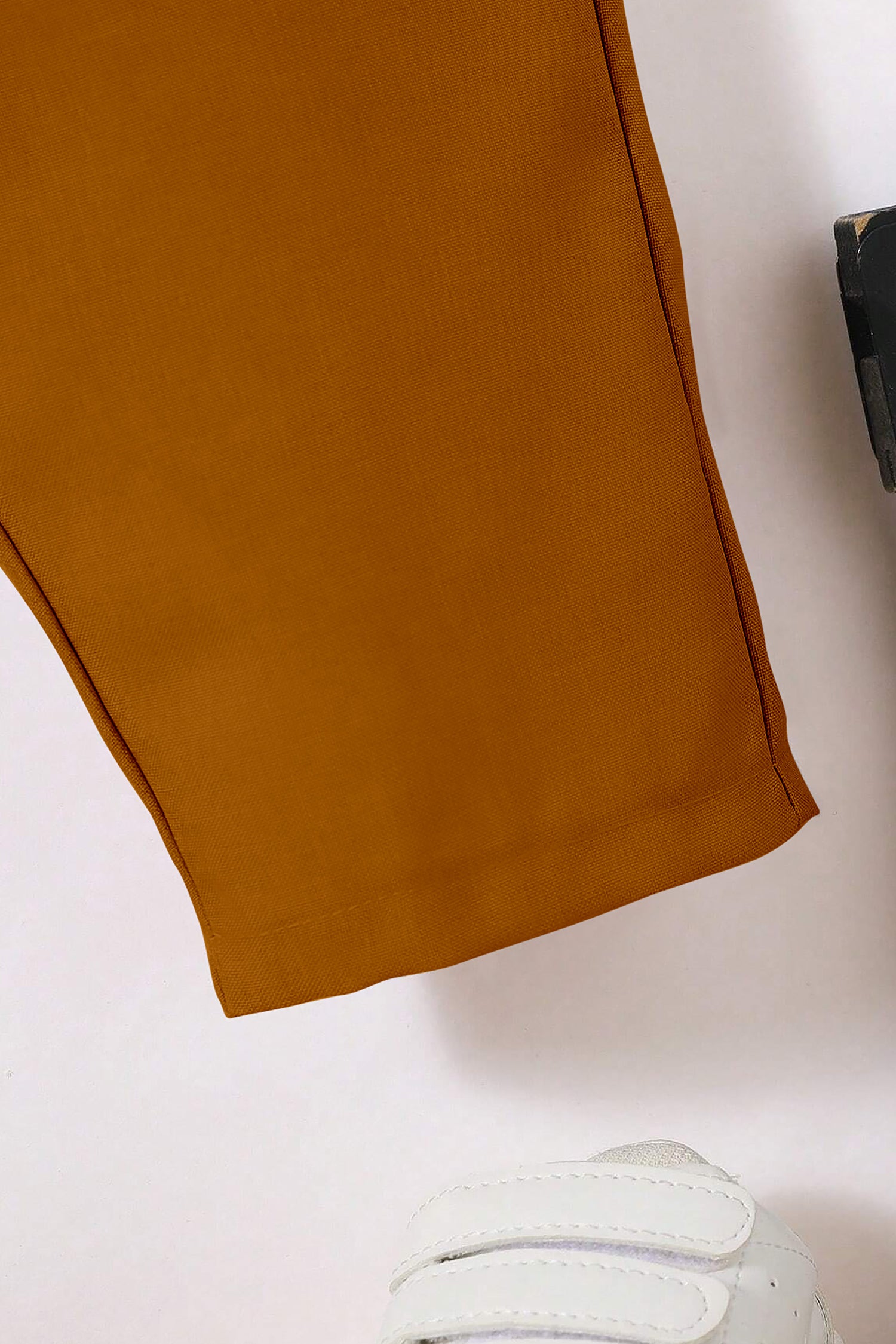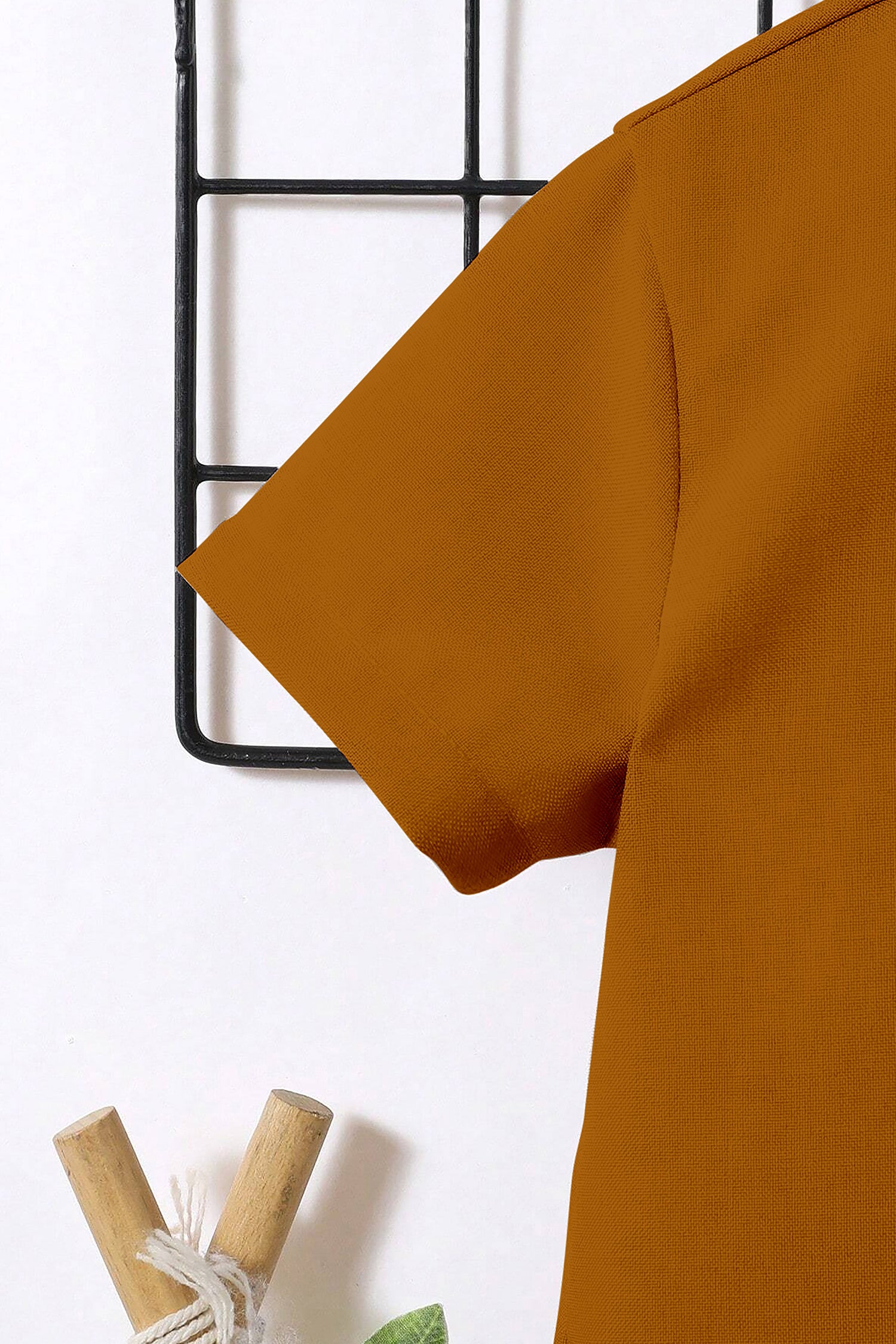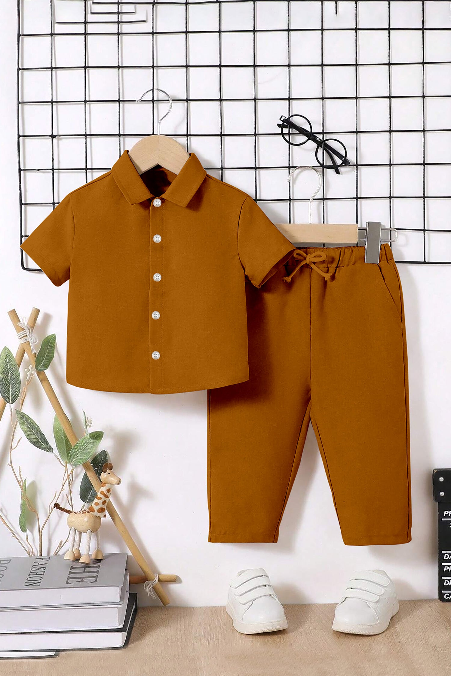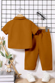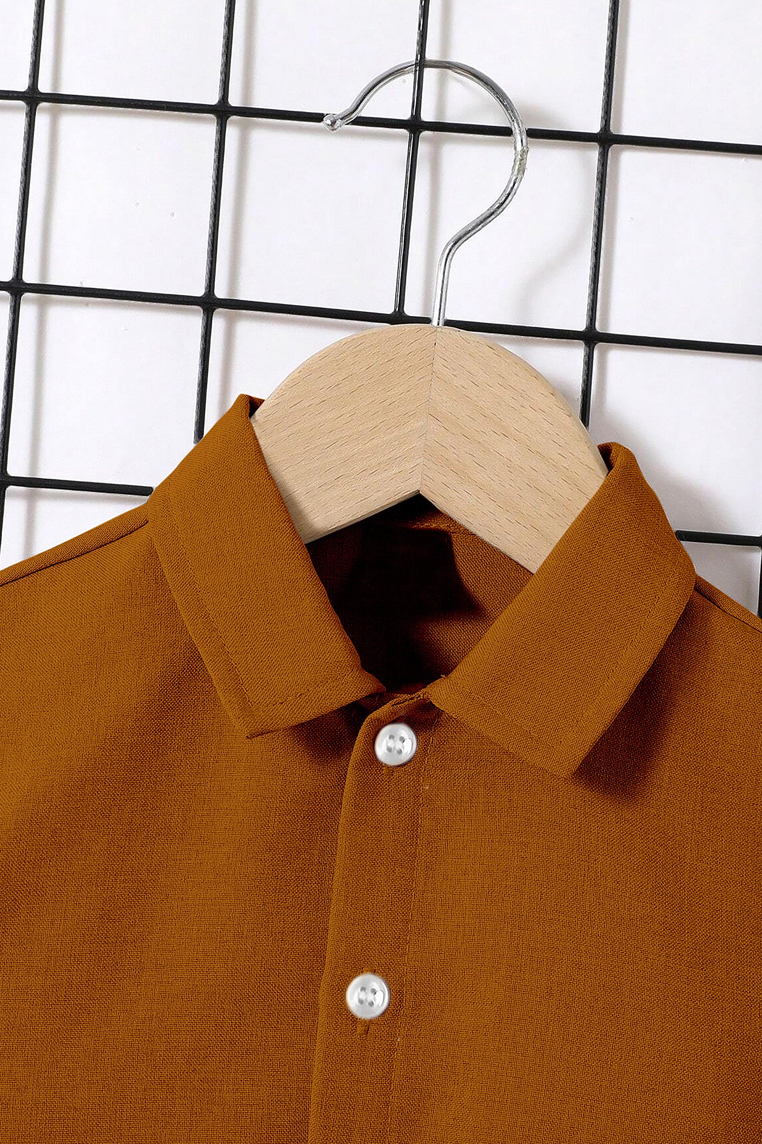 Keep your little one stylish and comfortable with this Rust colored boys coordinate set from Fashion Dream. This set is crafted from soft and breathable cotton fabric to make him feel comfortable all day long. The solid shirt designed with half sleeve, collared neck and front button closure. This set comes along matching solid pants with partial elasticated waistband and drawstring closure for perfect look. The clothing set adds a modern, versatile touch, making it perfect for both casual outings and special occasions. Pair it with casual foot wear to give him cheerful and trendy look for any event. "Note: The accessories and props used in these photoshoots are for aesthetic purposes only and may not be included in the final product or service."