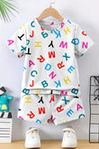 Your little one will be delighted with this simple yet elegant apparel combo set. The two-piece set can be mixed and matched with other items in your boy's wardrobe for added versatility. This cool and comfortable boys white co-ords set is perfect for winter adventures. The two-piece ensemble is both stylish and versatile, making it a great addition to your child's wardrobe. Exquisitely designed with Lycra fabric, this set is ideal for keeping your little one cool during the warmer months. It features a round neck, half sleeves, Latter Printed and comfortable shorts. The versatile design allows you to wear it with sneakers for play time or sandals for a casual look. "Note: The accessories and props used in these photoshoots are for aesthetic purposes only and may not be included in the final product or service."
