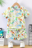 Your little one will be delighted with this simple yet elegant apparel combo set. The two-piece set can be mixed and matched with other items in your boy's wardrobe for added versatility. This cool and comfortable boys white co-ords set is perfect for winter adventures. The two-piece ensemble is both stylish and versatile, making it a great addition to your child's wardrobe. Exquisitely designed with Lycra fabric, this set is ideal for keeping your little one cool during the warmer months. It features a round neck, half sleeves and comfortable Printed shorts. The versatile design allows you to wear it with sneakers for play time or sandals for a casual look. "Note: The accessories and props used in these photoshoots are for aesthetic purposes only and may not be included in the final product or service."