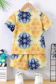 Your little one will be delighted with this simple yet elegant apparel combo set. The two-piece set can be mixed and matched with other items in your boy's wardrobe for added versatility. This cool and comfortable boys yellow co-ords set is perfect for winter adventures. The two-piece ensemble is both stylish and versatile, making it a great addition to your child's wardrobe. Exquisitely designed with Lycra fabric, this set is ideal for keeping your little one cool during the warmer months. It features a round neck, half sleeves and comfortable Printed shorts. The versatile design allows you to wear it with sneakers for play time or sandals for a casual look. "Note: The accessories and props used in these photoshoots are for aesthetic purposes only and may not be included in the final product or service."