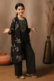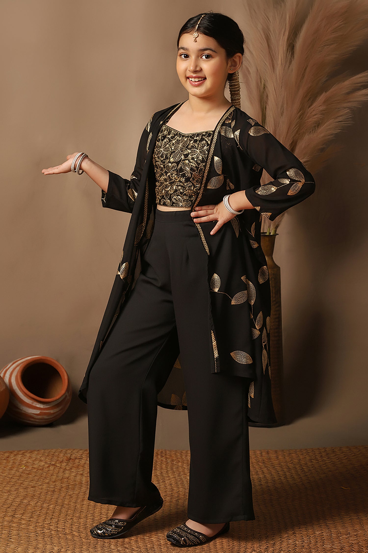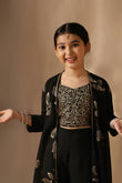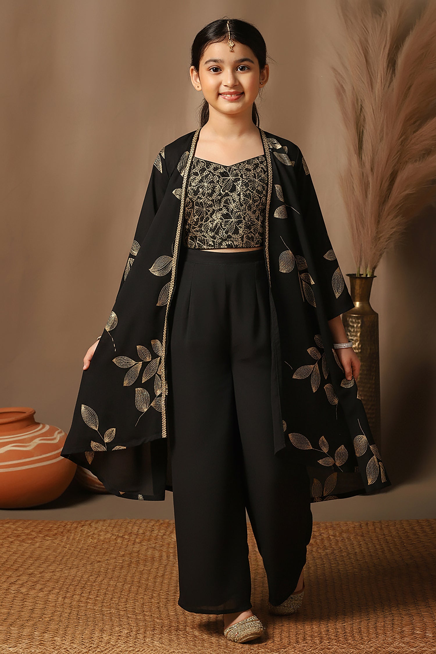 Girls Off White Georgette Printed Straight Ethnic Jacket, Choli With Palazzo Set