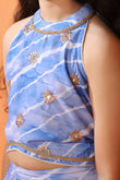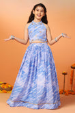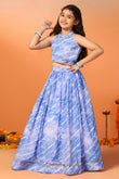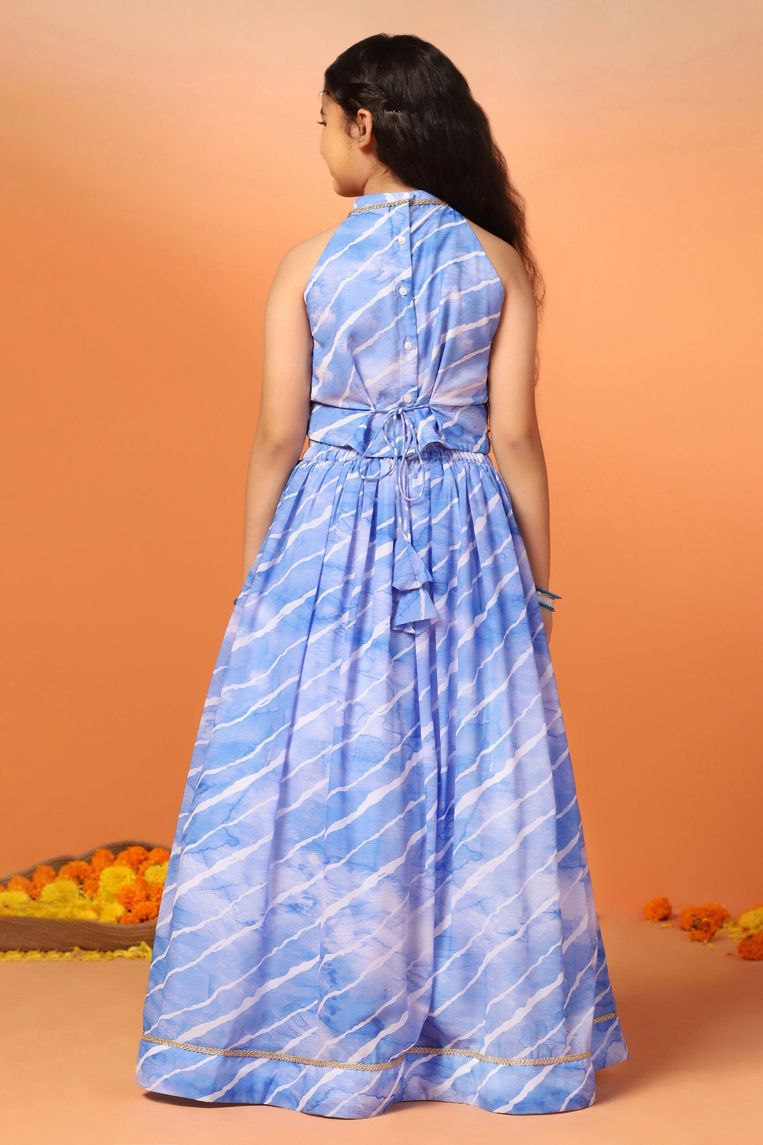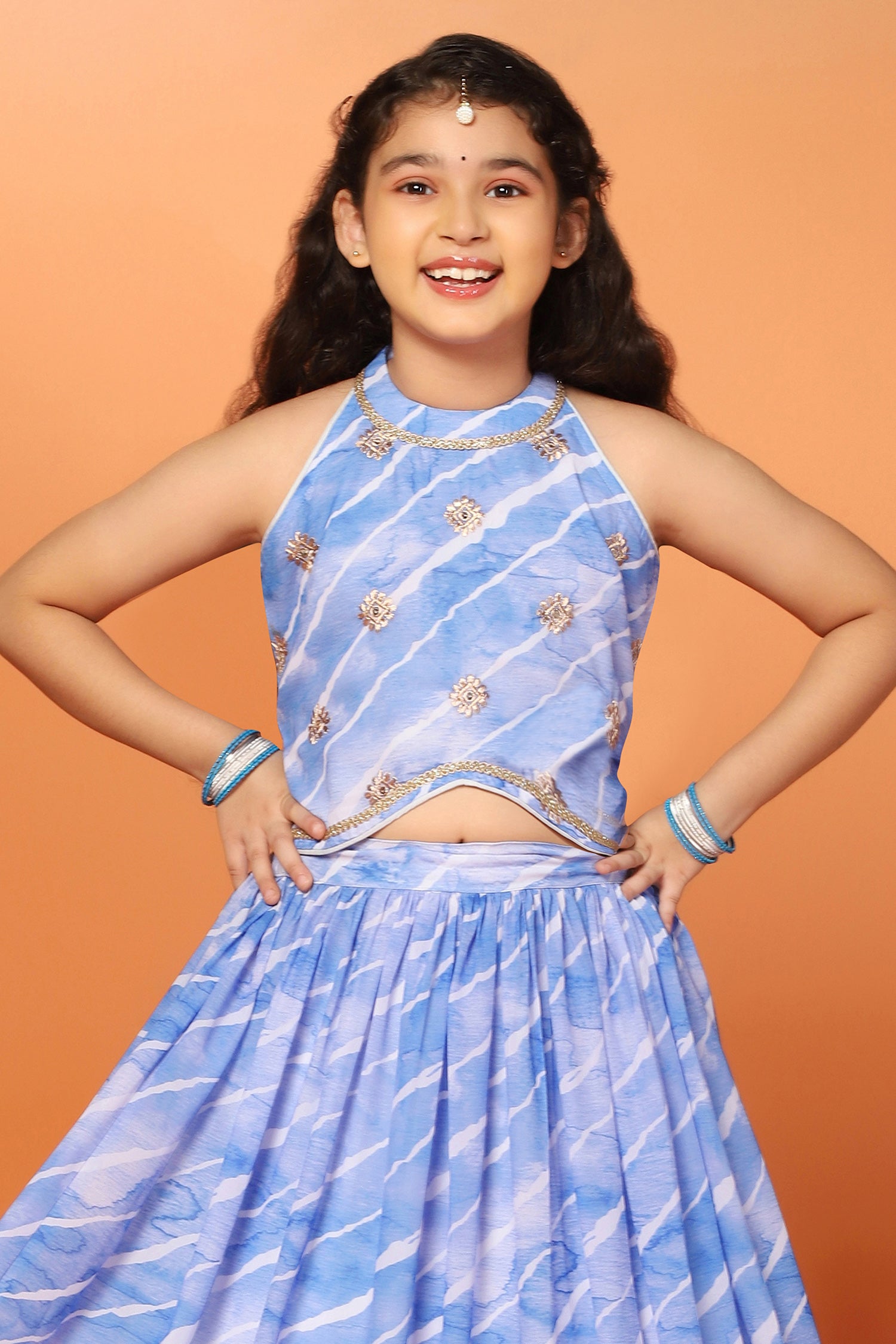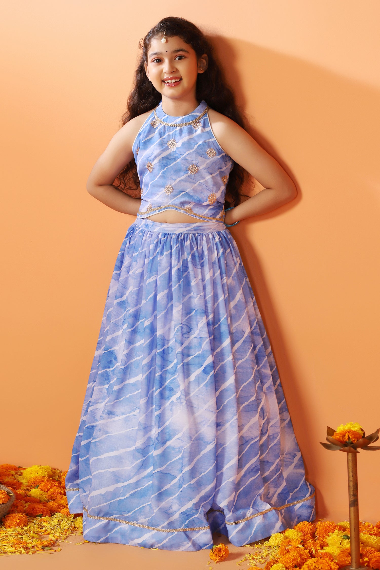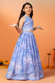 Girls Blue Georgette Leheriya Printed Readymade Lehenga With Choli Set
