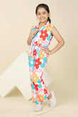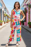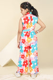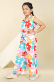 Spruce up your wardrobe with this multi color Floral Jumpsuit. This casual sleeveless jumpsuit has floral print as pattern type and is perfect for a day out with friends or a night of get-togethers with family. Made from a soft and breathable blend fabric, this multicolor jumpsuit for girls features a lapel collared neck, a waist tie-up belt for a flattering fit, wide-leg silhouette for a trendy style, and a convenient zip closure at the back for easy wear. Whether you're searching for a stylish jumpsuit for kids, a fun jump suit set for girls, or a standout overalls for girls, this piece brings color and comfort together effortlessly. Ideal for casual outings, family events, or relaxed evenings, it’s a great addition to any young fashion lover’s wardrobe. "Note: The accessories and props used in these photoshoots are for aesthetic purposes only and may not be included in the final product or service."