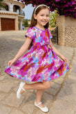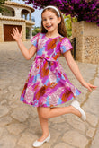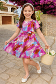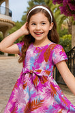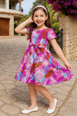 Dress your little girl with this multicolor girls dress from Fashion Dream. Make your girls look fabulous with our digital printed dress. This dress is made from polyester fabric keeping in mind everyday mischief or fancy occasions. It features knee length, round neck, short sleeves along same fabric belt detailing which give this dress a classy look that will make your girl look even more stylish. The flare silhouette that adds to its beauty will surely add to your girls look. Along with the dress, you can style your girls with their favorite side bag which will add something new to your girl's everyday look. Pair it up with a cute hair accessory and closed shoes for best friend's birthday party. "Note: The accessories and props used in these photoshoots are for aesthetic purposes only and may not be included in the final product or service.