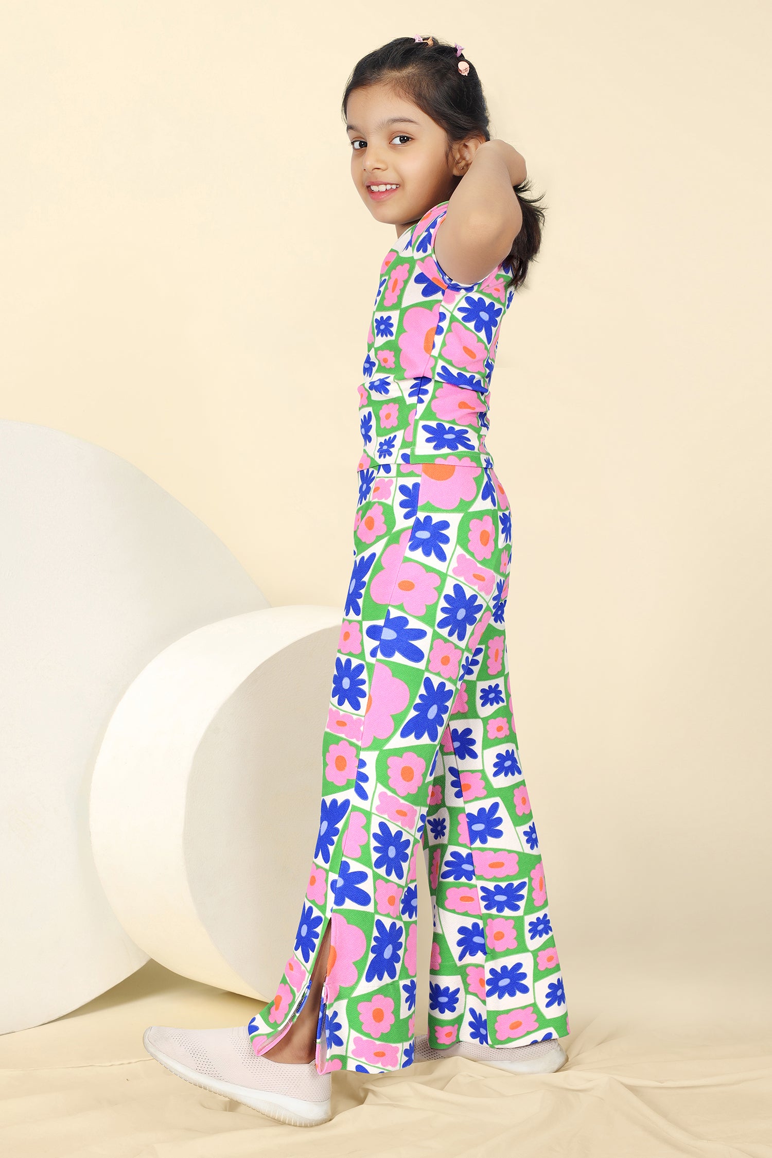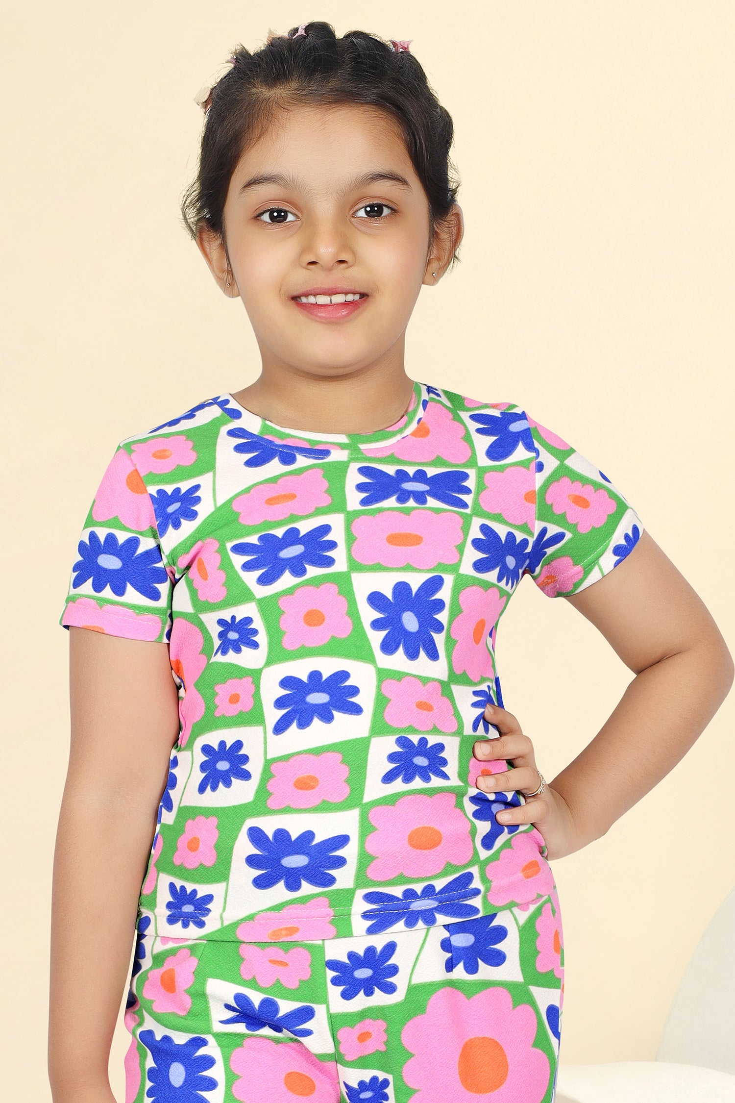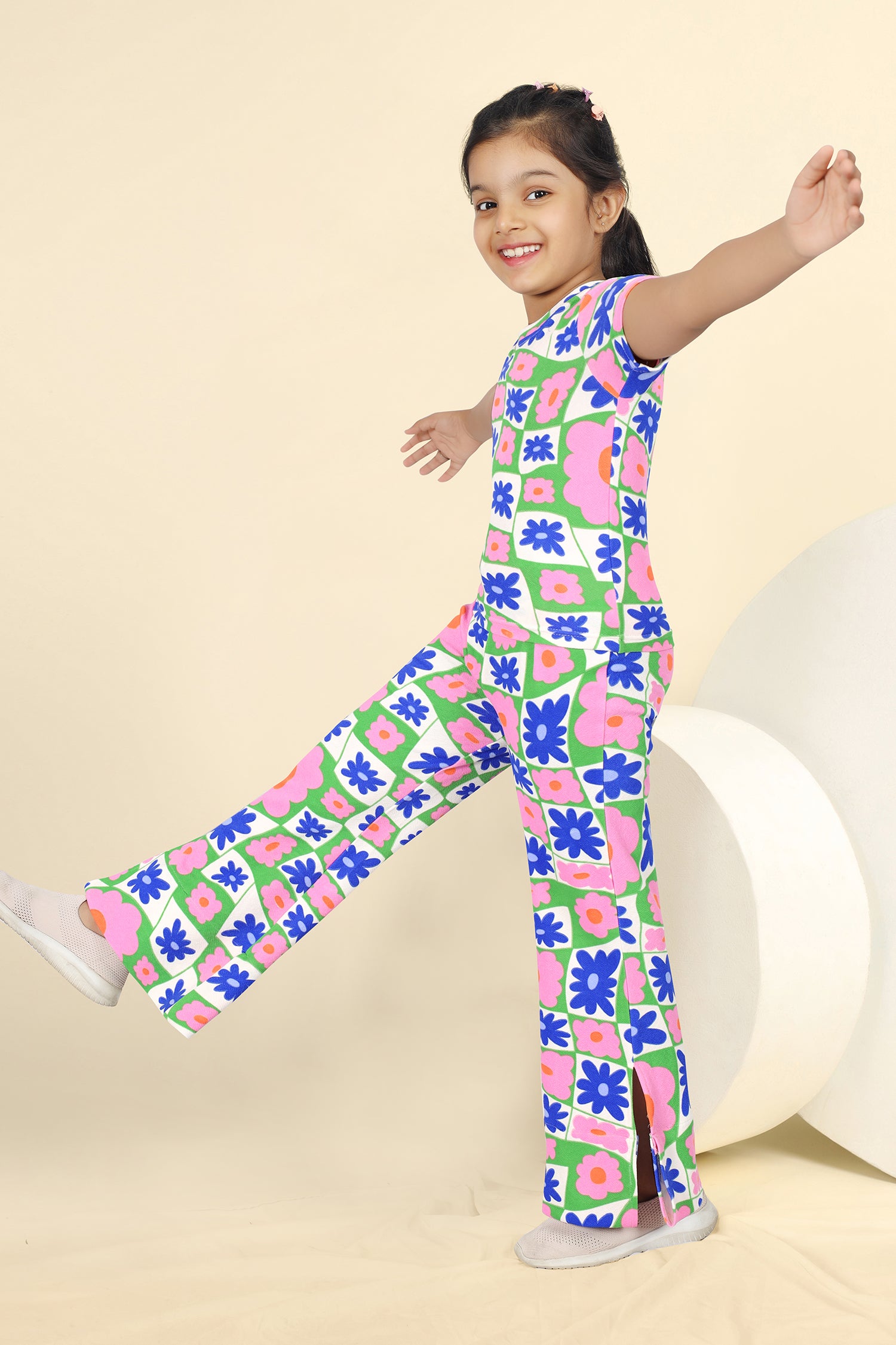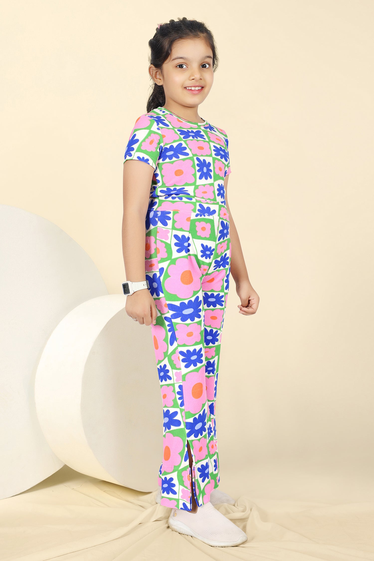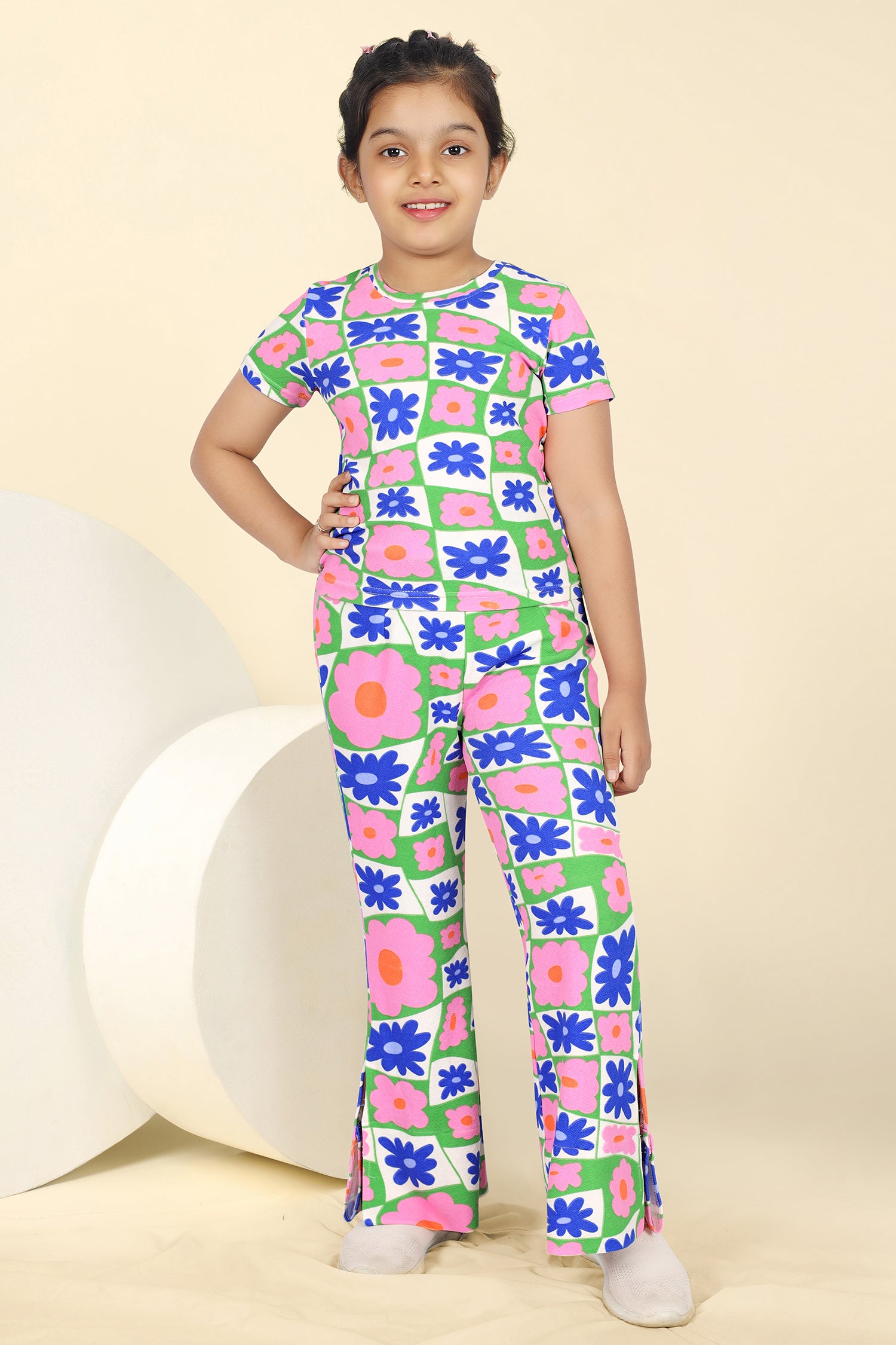 Your little one will be delighted with this simple yet elegant multi color apparel combo set from Fashion Dream. The two-piece set can be mixed and matched with other items in your girl's wardrobe for added versatility. This cool and comfortable girls’ clothing set is perfect for summer adventures. The co-ord set ensemble is both stylish and versatile, making it a great addition to your child's wardrobe. Made of breathable lycra blend fabric, this set is ideal for keeping your little one cool during the warmer months. The floral printed top features a round neck and short sleeves. The set comes along comfortable identical slit bottom, having fully elasticated waistband. The versatile design allows her to wear it with sneakers for play time or sandals for a casual look. "Note: The accessories and props used in these photoshoots are for aesthetic purposes only and may not be included in the final product or service."