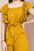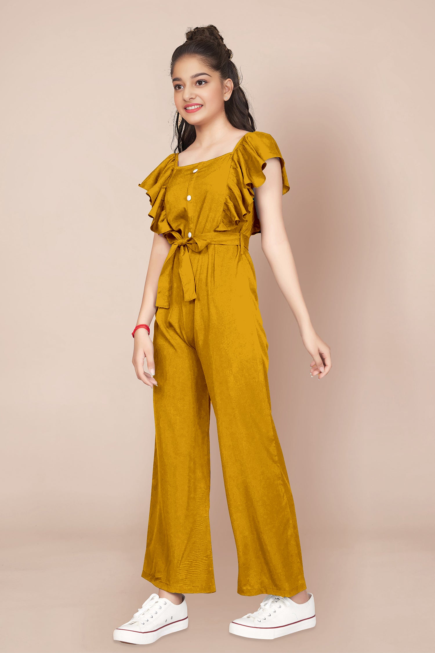 Girls Mustard Cotton Blend Ruffled Jumpsuit