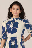 Spruce up your wardrobe with this Navy Blue color Girls Dress from Fashion Dream. This charming girls dress comes in a Western-style design with a floral print, giving it a fresh and trendy look for any casual or festive occasion. Made from soft and breathable rayon fabric, this kids dress for girls ensures day-long comfort with a smooth texture and easy movement. The dress features a high neck with gathered detailing, half puffed sleeves with cute tie-up knots, self-fabricated belt for comfortable fit and a tiered flared hemline that adds volume and flow. Its relaxed fit and elegant silhouette make it an ideal frock for girls for all-day wear ā whether it's a birthday dress for girls, a party wear dress for kids girls, or a casual long frock for girls. Pair this fancy dress for girls with sneakers for a playful look or sandals for a classy touch. Itās a stylish pick that blends comfort, fashion, and charm effortlessly. Perfect for: Western dress for girls, Floral frock for girls, Birthday dress for girls, Fancy dress for girls, Party wear dress for kids girls, Kids dress for girls, Long frocks for girls. āNote: The accessories and props used in these photoshoots are for aesthetic purposes only and may not be included in the final product or service.ā