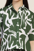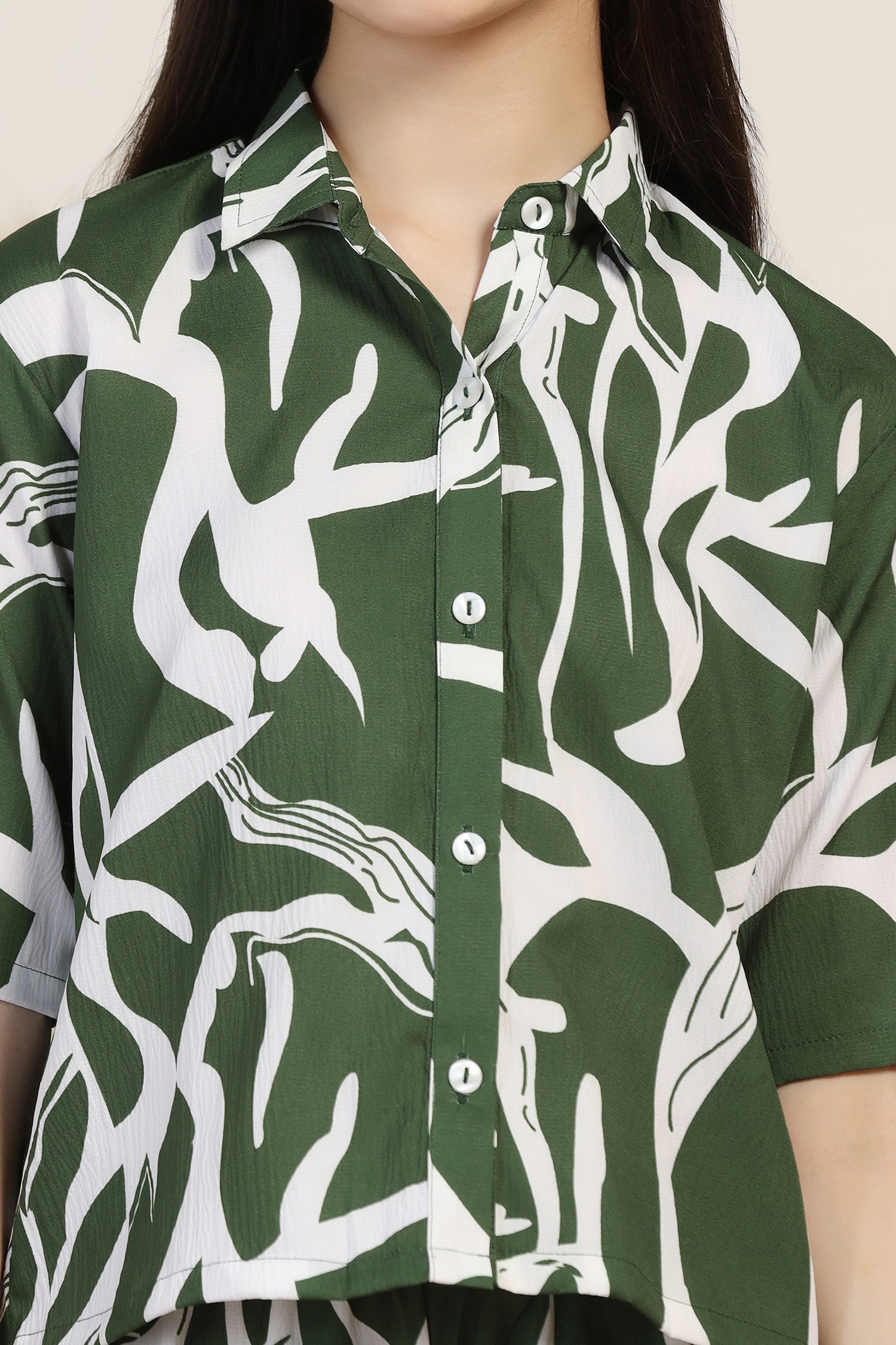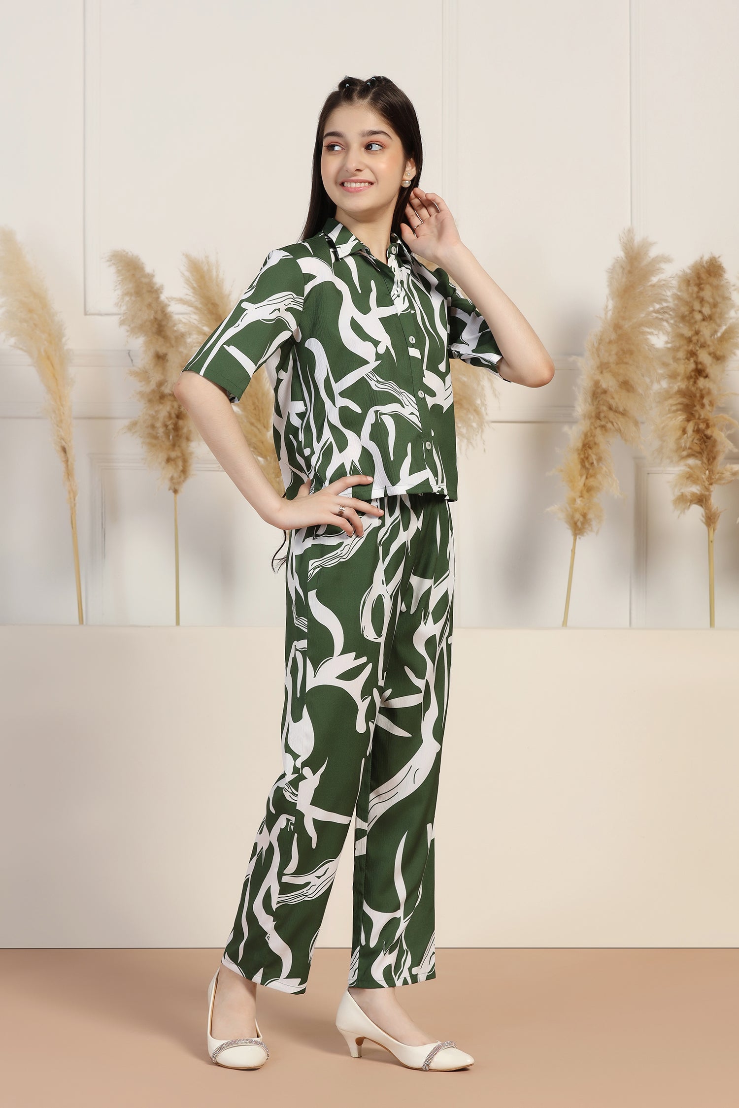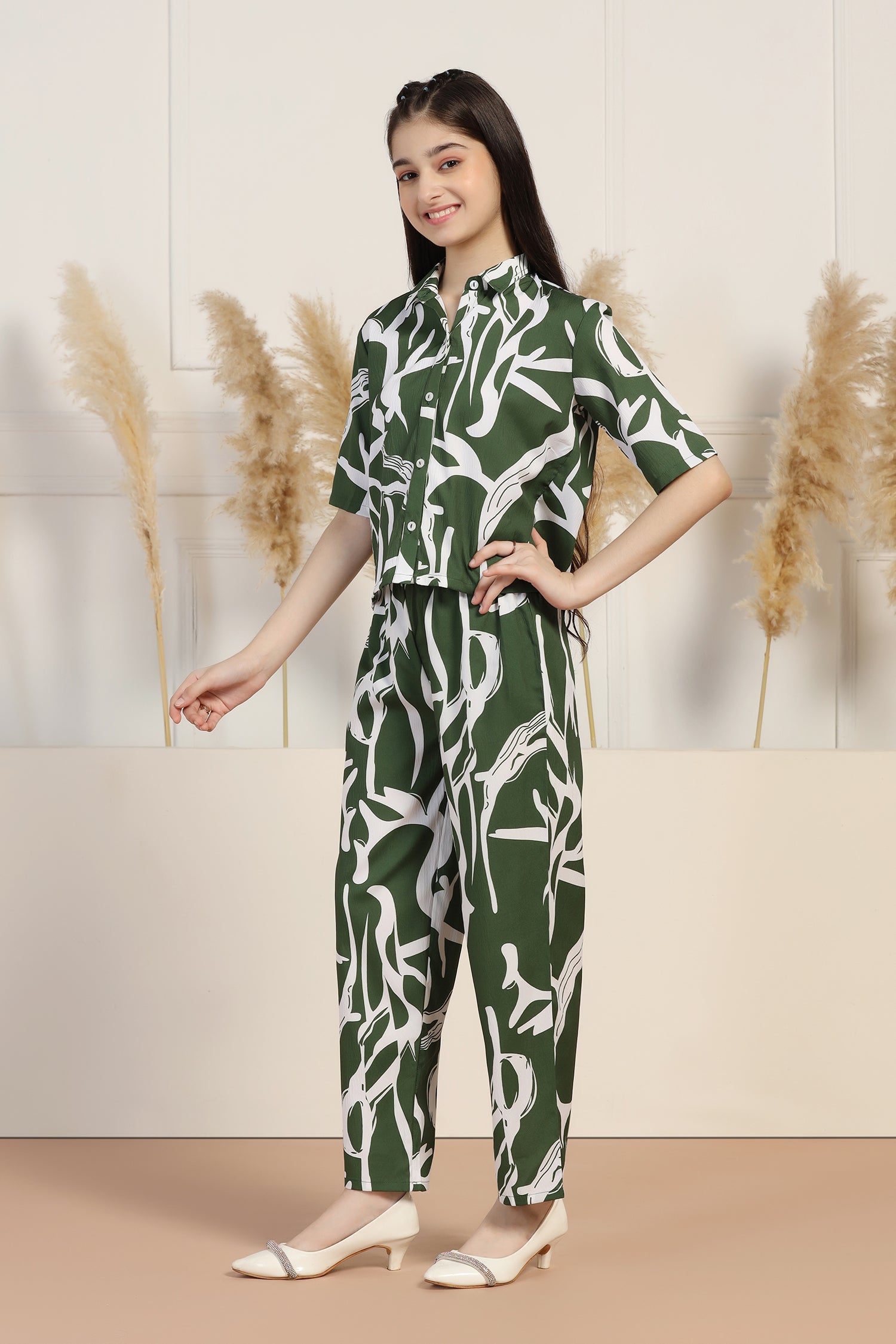 The two-piece set can be mixed and matched with other items in your girl’s wardrobe for extra versatility. With dreamy olive color with all over printed clothing set is made for laidback dressing for your little girl's. It is crafted from Delta (cotton blend) fabric in a comfy fit, featured with a shirt collar neck with front opening button plackets and regular short sleeves for a relaxed feel. The hemline finishes at a straight short length. This combo set comes with a printed pant style bottom that have fully elasticated waist easy-to-wear. Style up your girl’s summer holiday look with this clothing set and complete with her favorite sneakers, hair band and stylish glasses. "Note: The accessories and props used in these photoshoots are for aesthetic purposes only and may not be included in the final product or service."