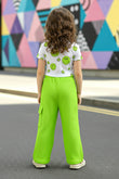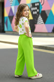 Upgrade your child’s wardrobe with this trendy girls Parrot Green clothing set, designed to blend comfort, style, and durability. Crafted from rib fabric, this kids co-ord set includes a stylish printed crop top embellished with stone detailing and relaxed-fit cargo pant with side pocket, making it a must-have summer outfit set for girls. The ribbed fabric allows breathability and stretch, keeping kids comfortable throughout the day. The cheerful smiley print adds a playful vibe, while the elasticated waist pants ensure easy movement and a perfect fit. This girls casual wear set is suitable for everyday use, outdoor activities, vacations, or casual parties. Designed for modern kids’ fashion, this girls outfit set pairs effortlessly with sneakers or sandals for a complete look. Easy to maintain and made for regular wear, it’s a reliable choice for parents looking for stylish and comfortable kids clothing sets.