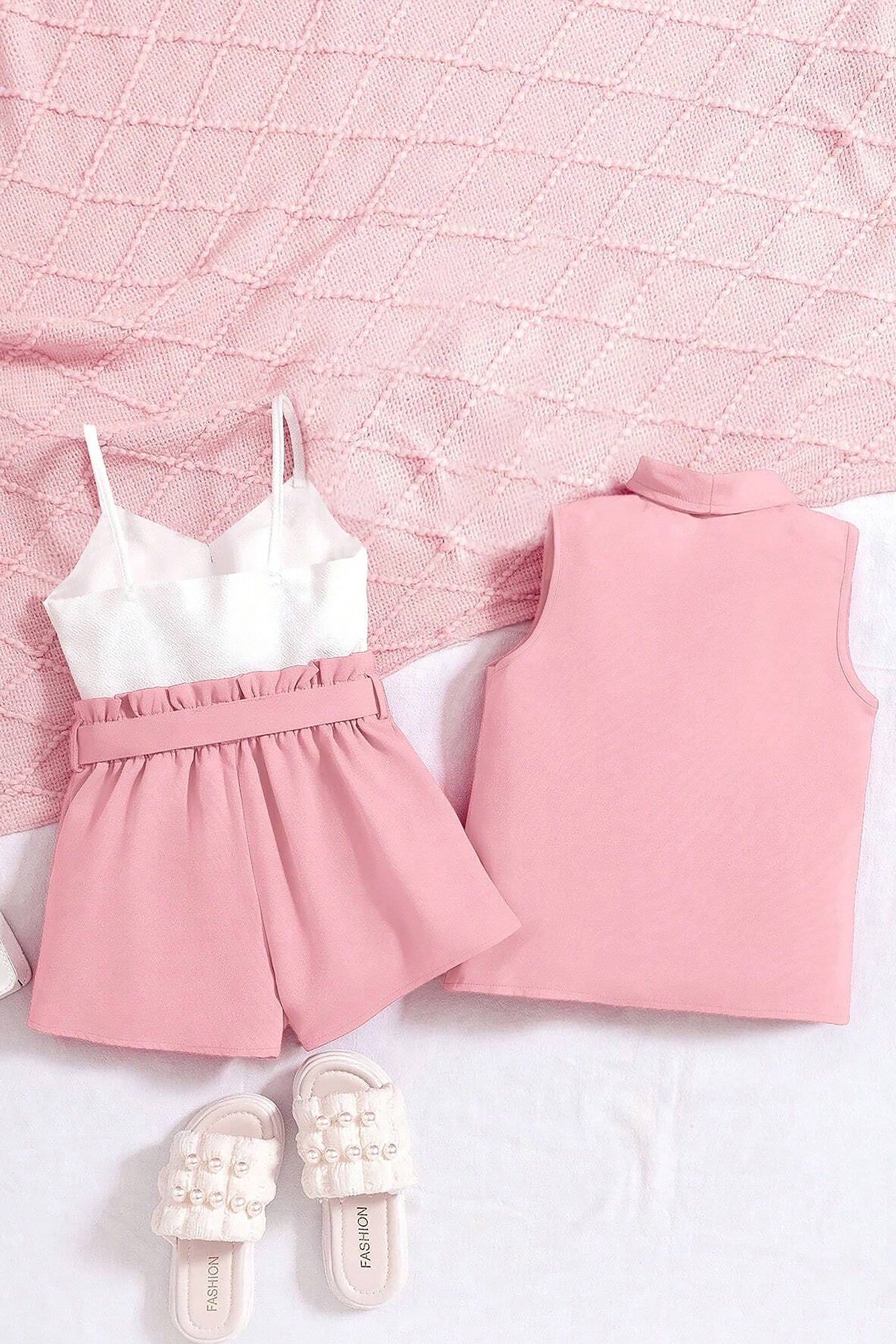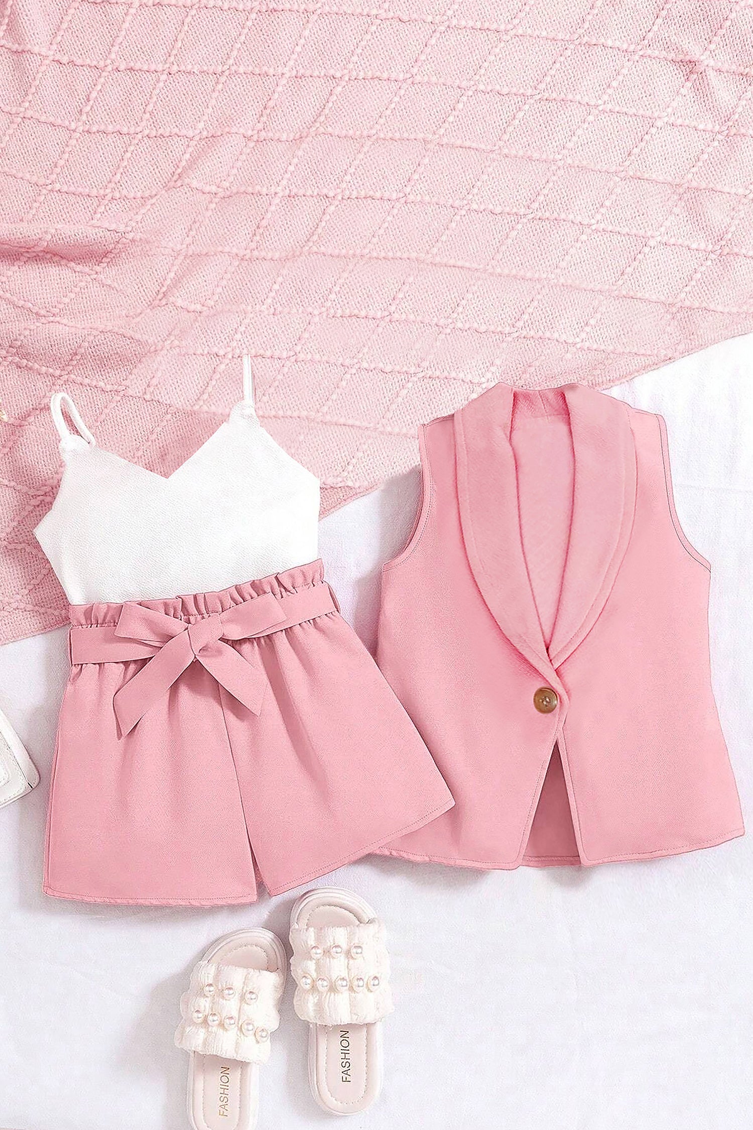 Refresh your girl’s wardrobe with this peach colour co-ord set with jacket from Omapx. This classy set completes your look for festive/wedding/casual parties. Get the perfect blend of elegance and comfort with our set. This clothing set for girls made from cotton blend fabric that is light and comfortable to wear. This combo set features sweetheart neck, sleeveless bodice, self-fabricated belt with front bow. This casual wear is designed with passion keeping style & fashion and comfort in mind. The set comes along with matching jacket features collar neck, Sleeveless bodice, front closure with button. "Note: The accessories and props used in these photoshoots are for aesthetic purposes only and may not be included in the final product or service."