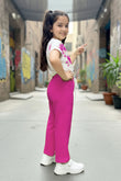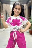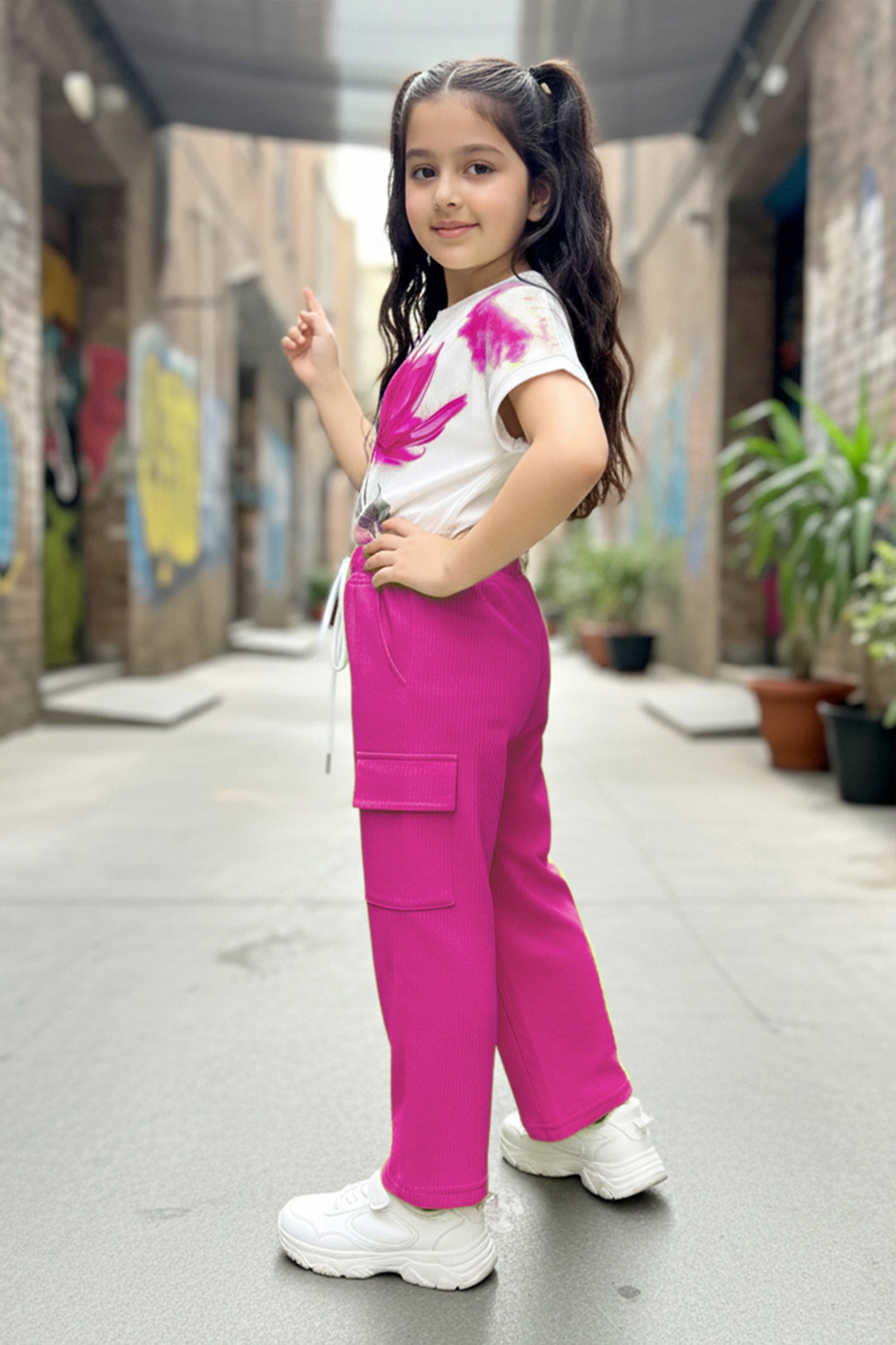 Girls Pink Rib Florel Printed T-shirt and Cargo pant Sets