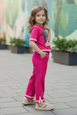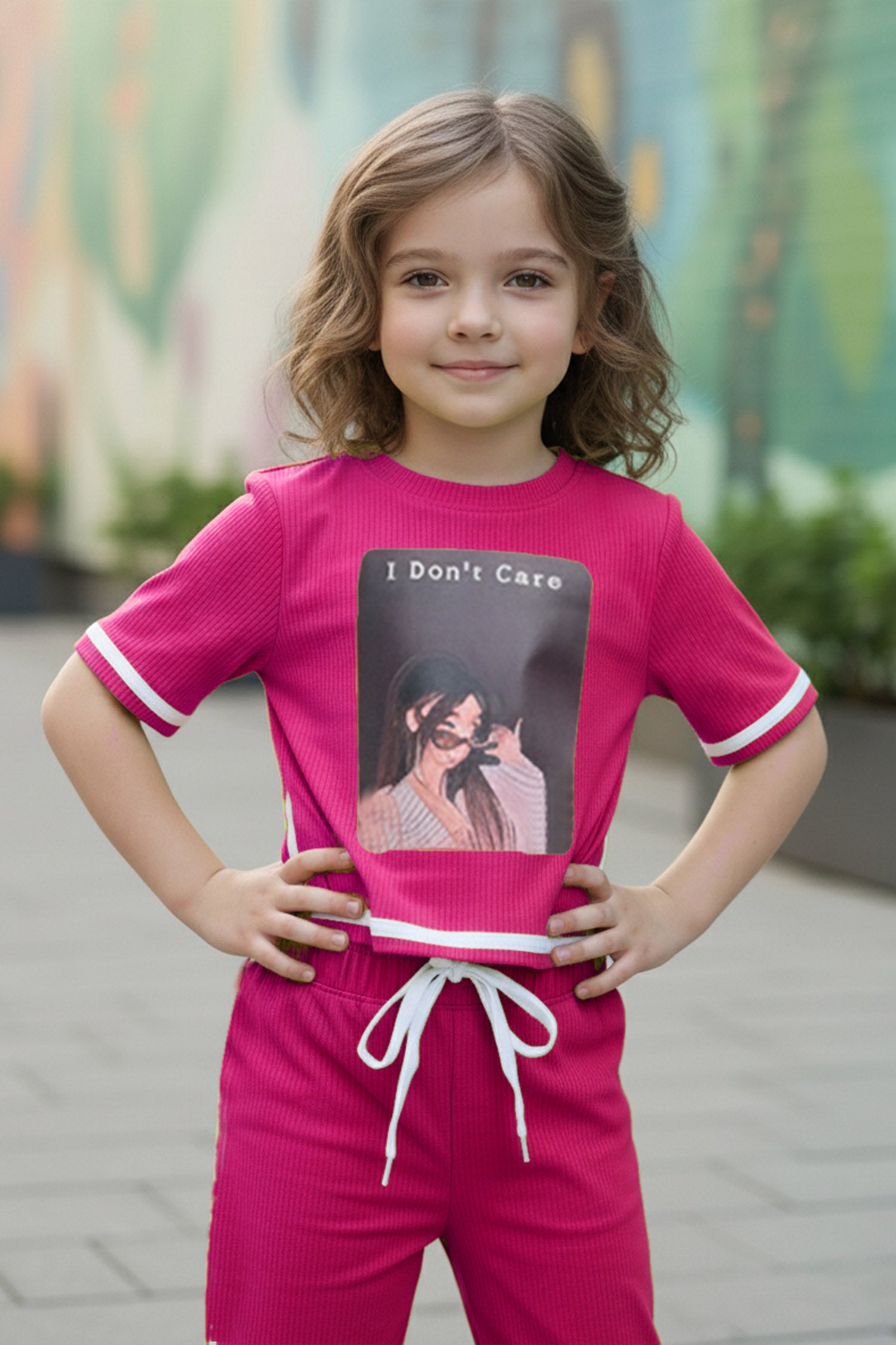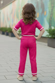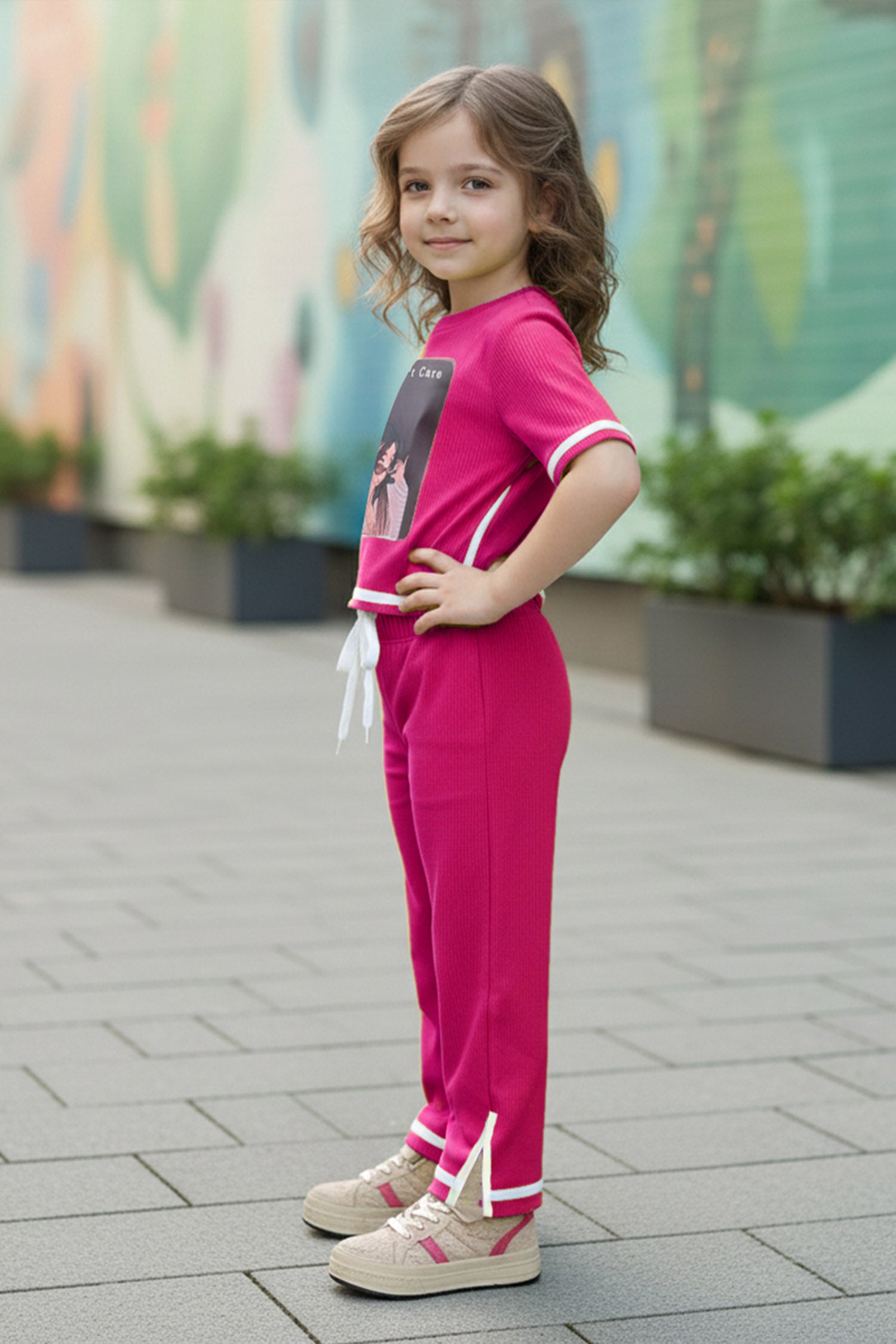 Add a fresh and playful vibe to your child’s wardrobe with this stylish Pink co-ord set. This girls’ ribbed co-ord set is designed to combine comfort, style, and practicality for everyday wear. Crafted from soft rib fabric, it provides a smooth texture with natural stretch, allowing easy movement throughout the day. The graphic-printed top adds a trendy touch, while the matching pants feature an elastic waistband with drawstring for a comfortable and adjustable fit. Ideal for casual outings, playtime, or relaxed days at home, this coordinated set ensures your child looks stylish without compromising on comfort. Pair this co-ord set with sneakers or casual shoes for a sporty look. Add a lightweight jacket or cap for an extra layer of style during outings.