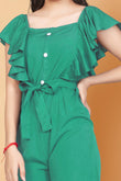 Spruce up your wardrobe with this wide leg jumpsuit from Fashion Dream. This cotton blend maxi jumpsuit is perfect for a party and day out with friends or night get-togethers. Pair it up with a cute hair accessory and slip-on flats or your favourite kicks for her to shine at the best friend’s birthday party and other casual time. Give yourself an ultra-modern casual look with this A-line jumpsuit. This rama color jumpsuit features flutter sleeve, square neck and front button detailing and self-attached belt. This jumpsuit has zip at backside for perfect fit. Our dresses are comfortable and suitable for all seasons. The material is light and breathable giving you soft comfort and a delicate feminine look. It is western style regular fit casual wear for girls.