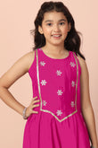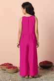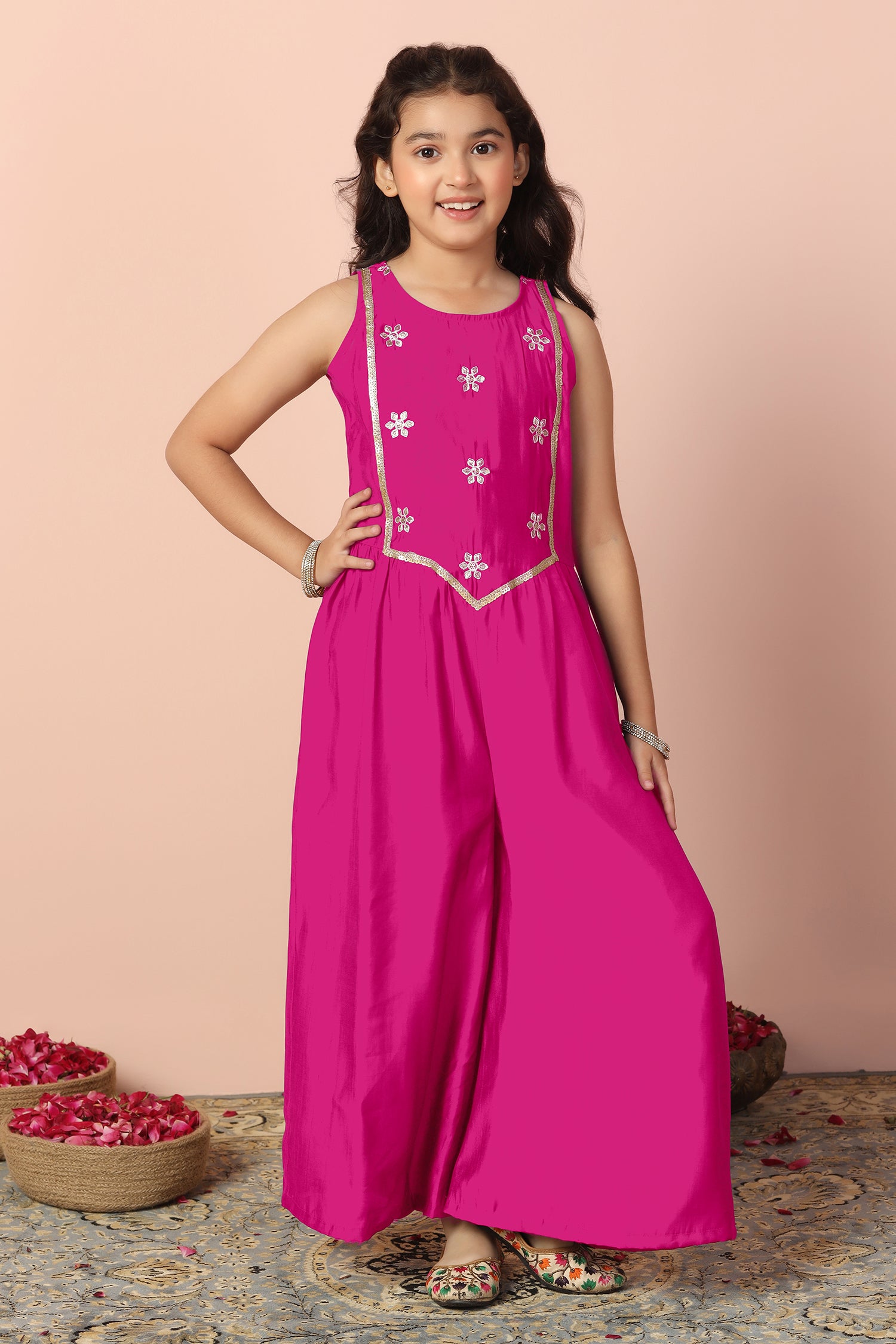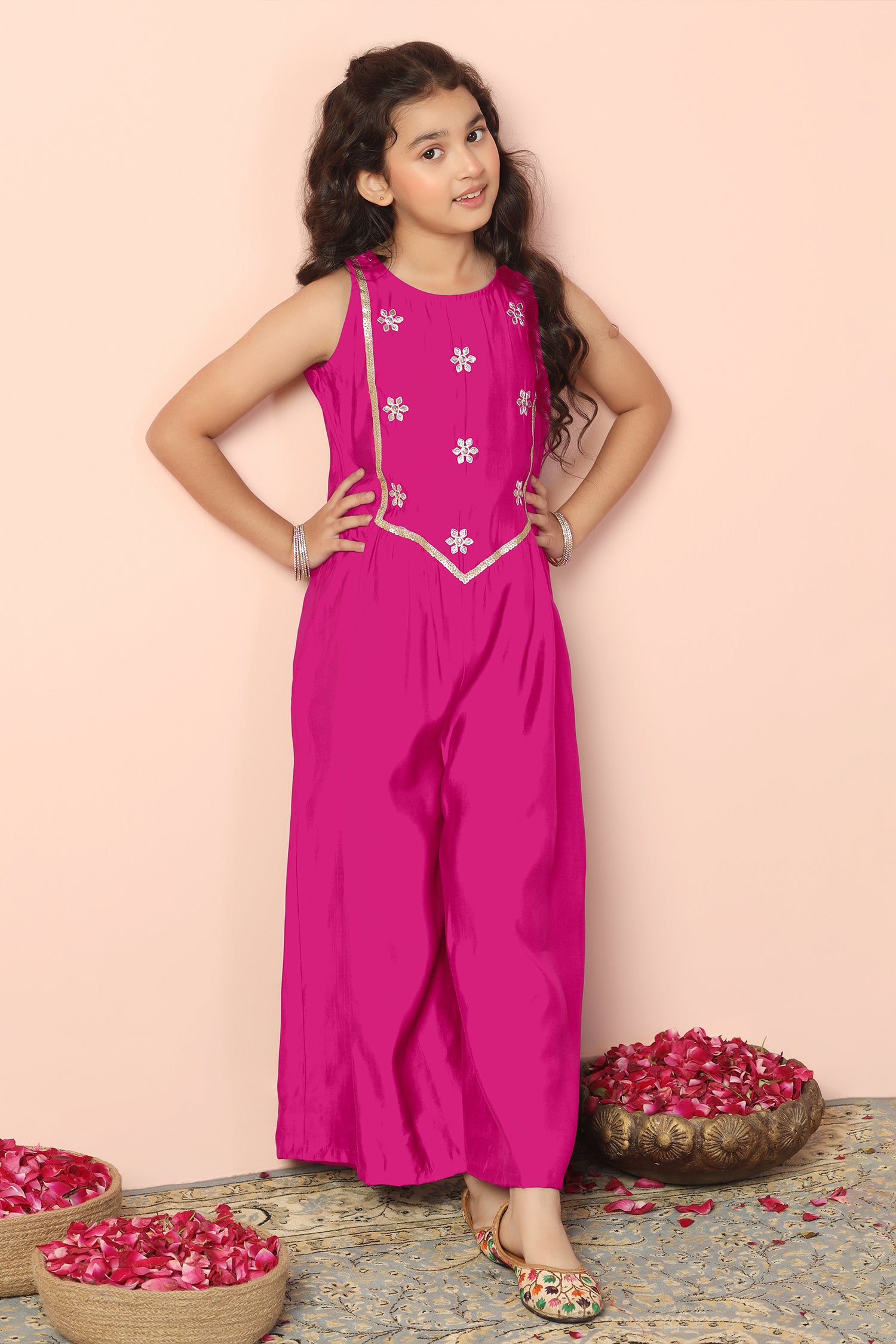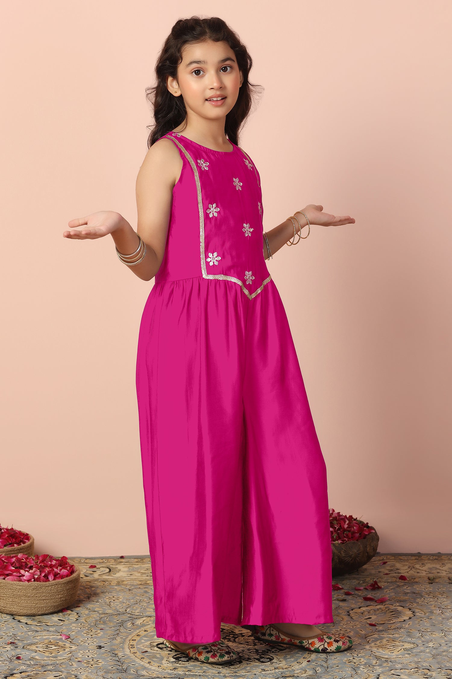 Girls Rani Chanderi Silk Embroidered Jumpsuit