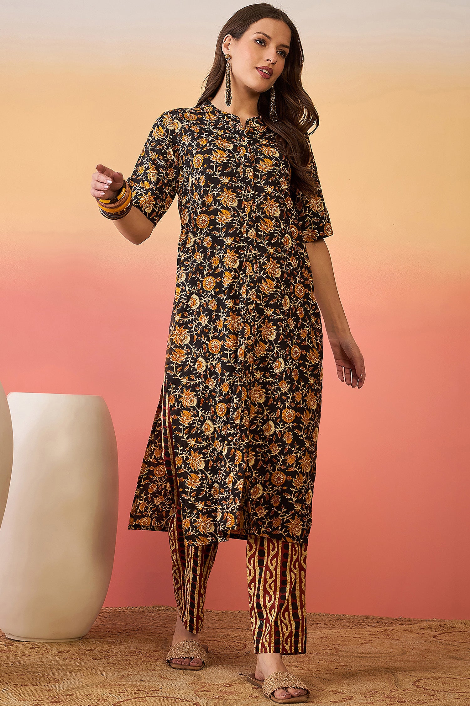 Stay stylish and comfortable with this Women’s Cotton Black colour Kurta Set from fashion dream featuring a graceful Round-Neck and trendy Half sleeves. Made from breathable cotton with a beautiful printed design, this elegant kurta set for women is perfect for daily wear, office wear, casual outings, and summer ethnic fashion. "Note: The accessories and props used in these photoshoots are for aesthetic purposes only and may not be included in the final product or service”