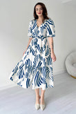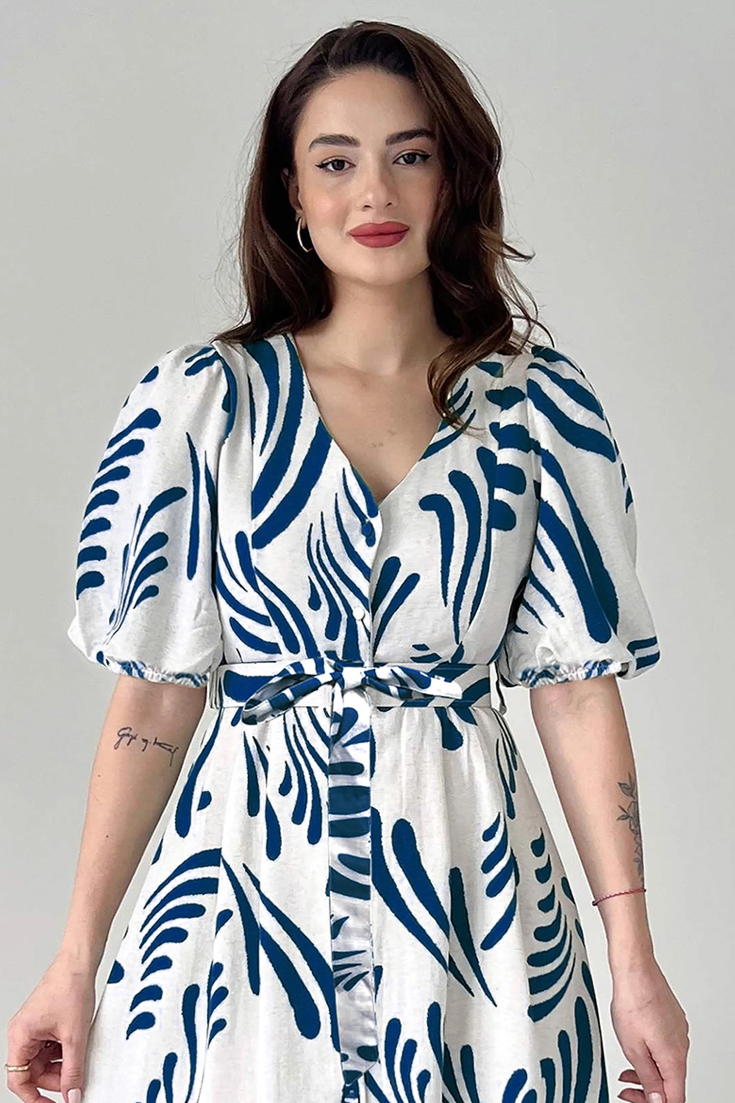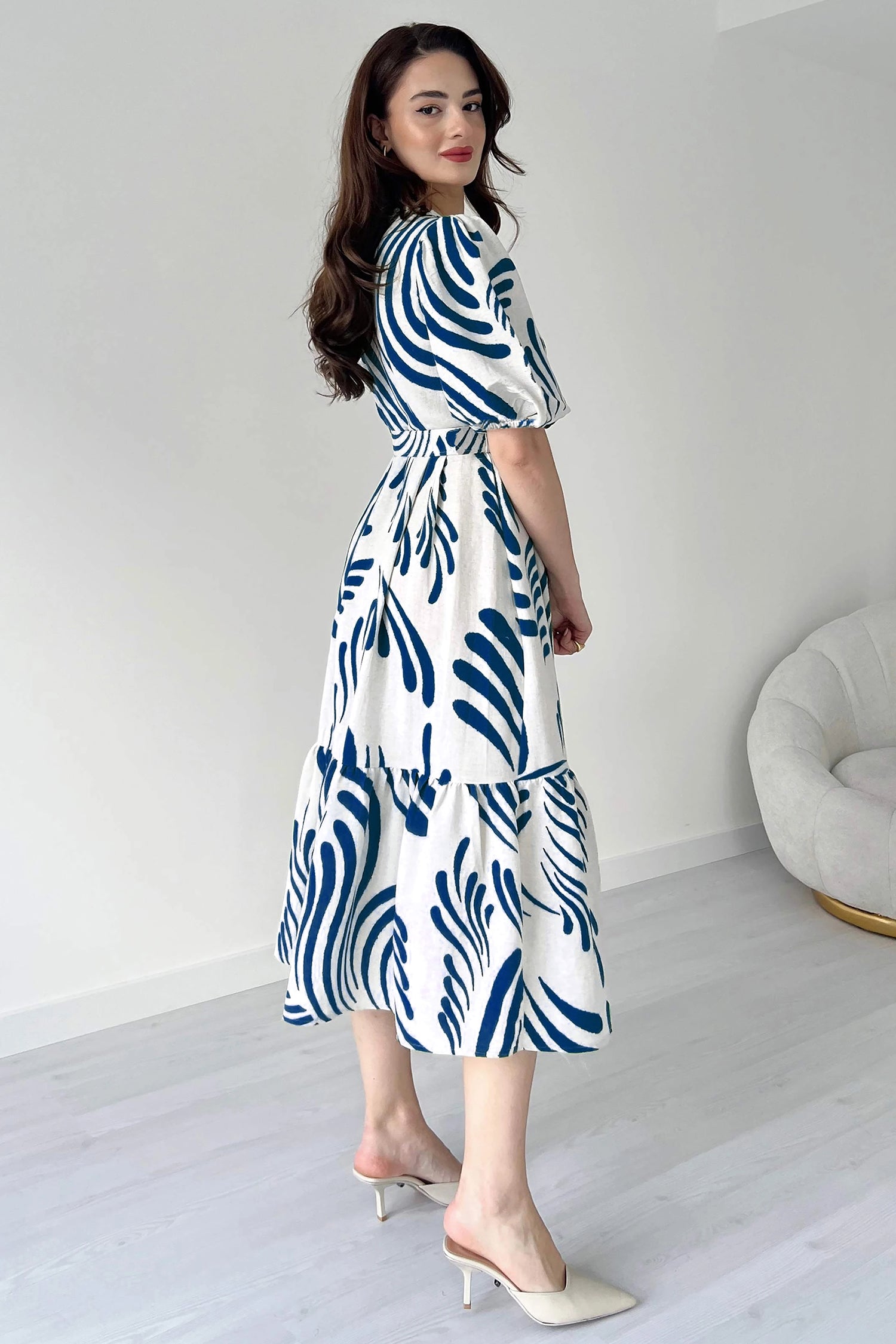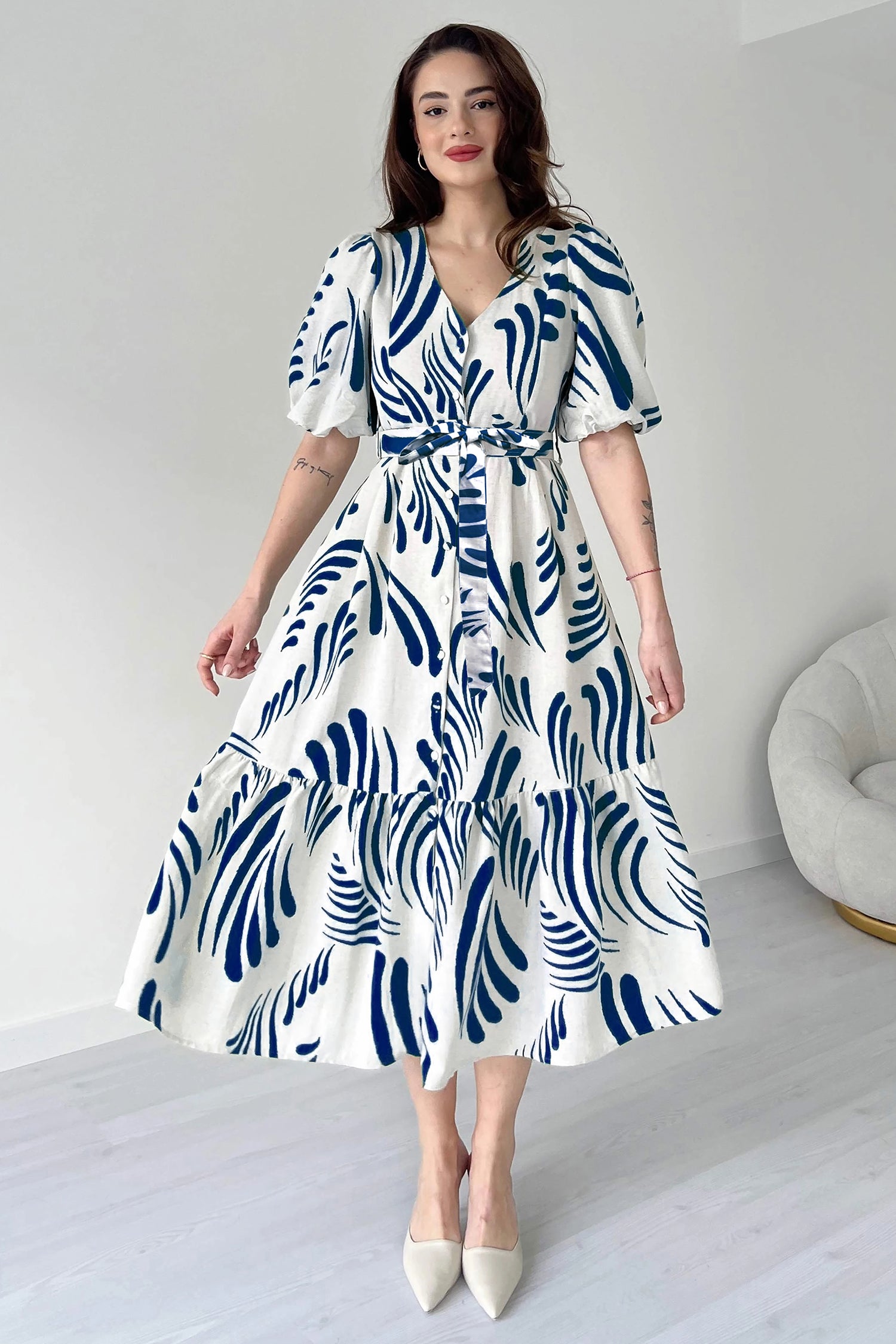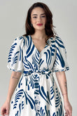 Womens Blue Viscose Rayon Printed Calf Length dress