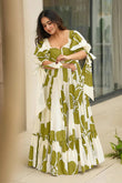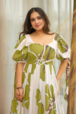 Spruce up your wardrobe with this women dress from Fashion Dream. This Green color maxi dress for women stylish piece has a floral print as pattern type and is perfect for a day out with friends or a night of get-togethers with family. Crafted from a soft rayon fabric, this long dress for woman features a flattering flared silhouette with a flowing maxi length. The sweetheart neckline at the front adds a touch of femininity, while the dress offers a chic modern twist. The puff sleeves with tie-up bows bring in playful elegance, while the gathered ruffled hemline adds fluid movement and charm. Designed in an easy pull-over style, this western dress for women is versatile, comfortable, and effortlessly stylish. Pair it with pearl drop earrings, strappy heels, and a clutch to complete your party wear dress for women stylish look. This versatile outfit fits seamlessly into multiple style categories — whether you’re looking for dresses for women western, maxi dress for women stylish, one piece dress for women long, long dress for woman, frock for women latest design, party wear dress for women stylish, gown for women western wear, dress for woman western, women dress western, midi dress for woman, womens dresses, frocks for women stylish — making it a must-have addition to your modern wardrobe. Note: The accessories and props used in these photoshoots are for aesthetic purposes only and may not be included in the final product or service.