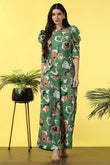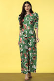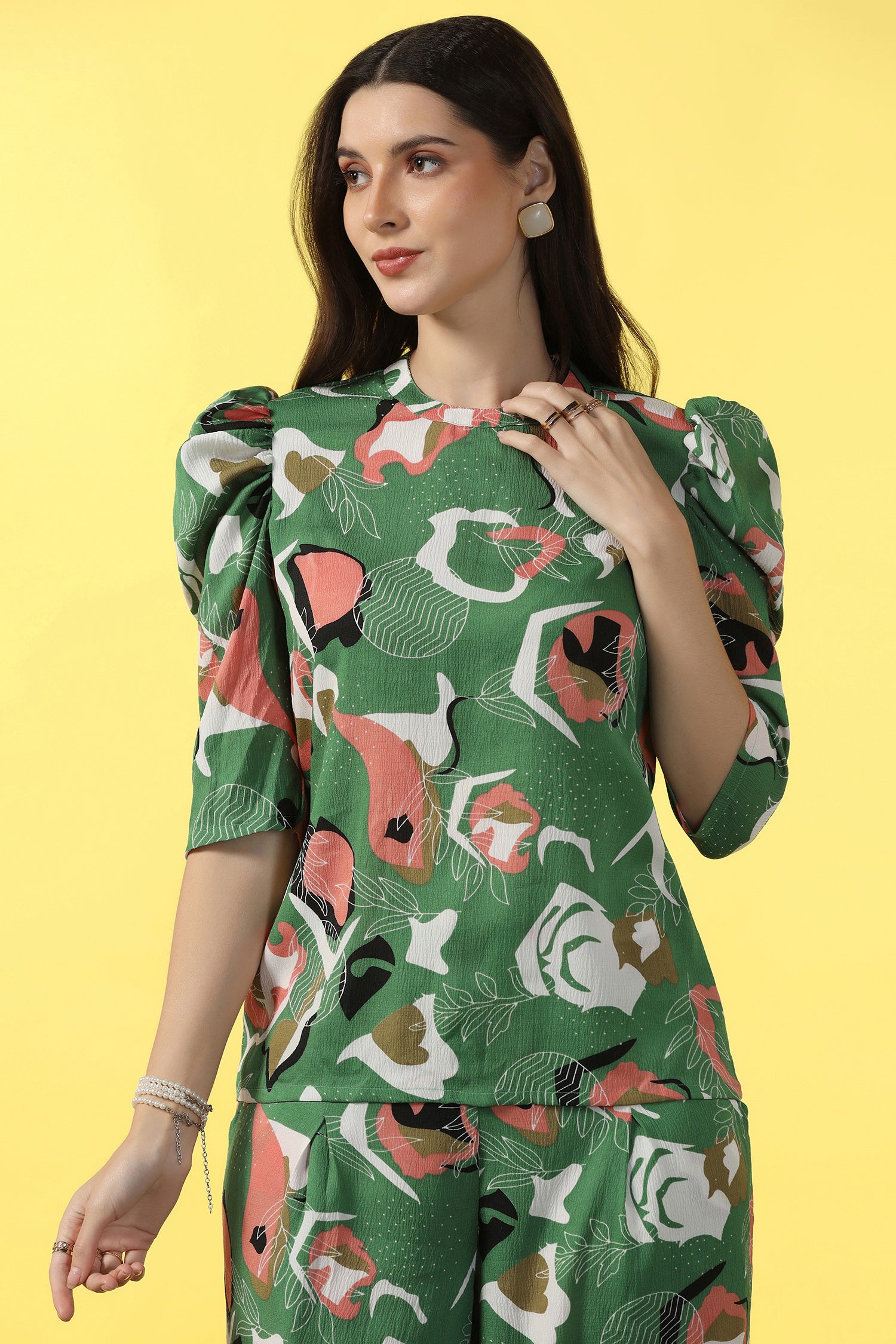Refresh your wardrobe with this mehendi colored co-ord set from Fashion Dream. This Style top and pant set completes your look for your outings. Get the perfect blend of elegance and comfort with women’s two-piece co-ord set. This clothing set for women is made from cotton blend fabric that is light and comfortable to wear. The set features abstract printed top having round neck, half puff sleeves, zip along button closure at back to give it a perfect fit. This western wear is designed with passion keeping style, fashion and comfort in mind. The set comes along with a printed pant bottom having two side pockets and partially elasticated waistband for a comfortable fit. Pair it with matching earrings and sandals to complete the casual yet fashionable look. "Note: The accessories and props used in these photoshoots are for aesthetic purposes only and may not be included in the final product or service."