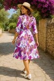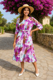Spruce up your wardrobe with this multicoloured Women's Printed calf length Dress from Fashion Dream. This Women's Dress is perfect for a day out with friends or a night, get-togethers with family Add a touch of magic to your style with our stunning Digital Printed Midi Dress for women’s. Made from lightweight cotton blend fabric, this gorgeous dress is designed to keep you cool and comfortable all day long. The flared silhouette and classic round neck with self-fabricated belt, 3/4 sleeves give it a timeless look, Pair it with your favourite accessories and get ready to slay the brunch in style. Perfect for Western wear, this A-line dress is sure to make you look and feel elegant. "Note: The accessories and props used in these photoshoots are for aesthetic purposes only and may not be included in the final product or service."