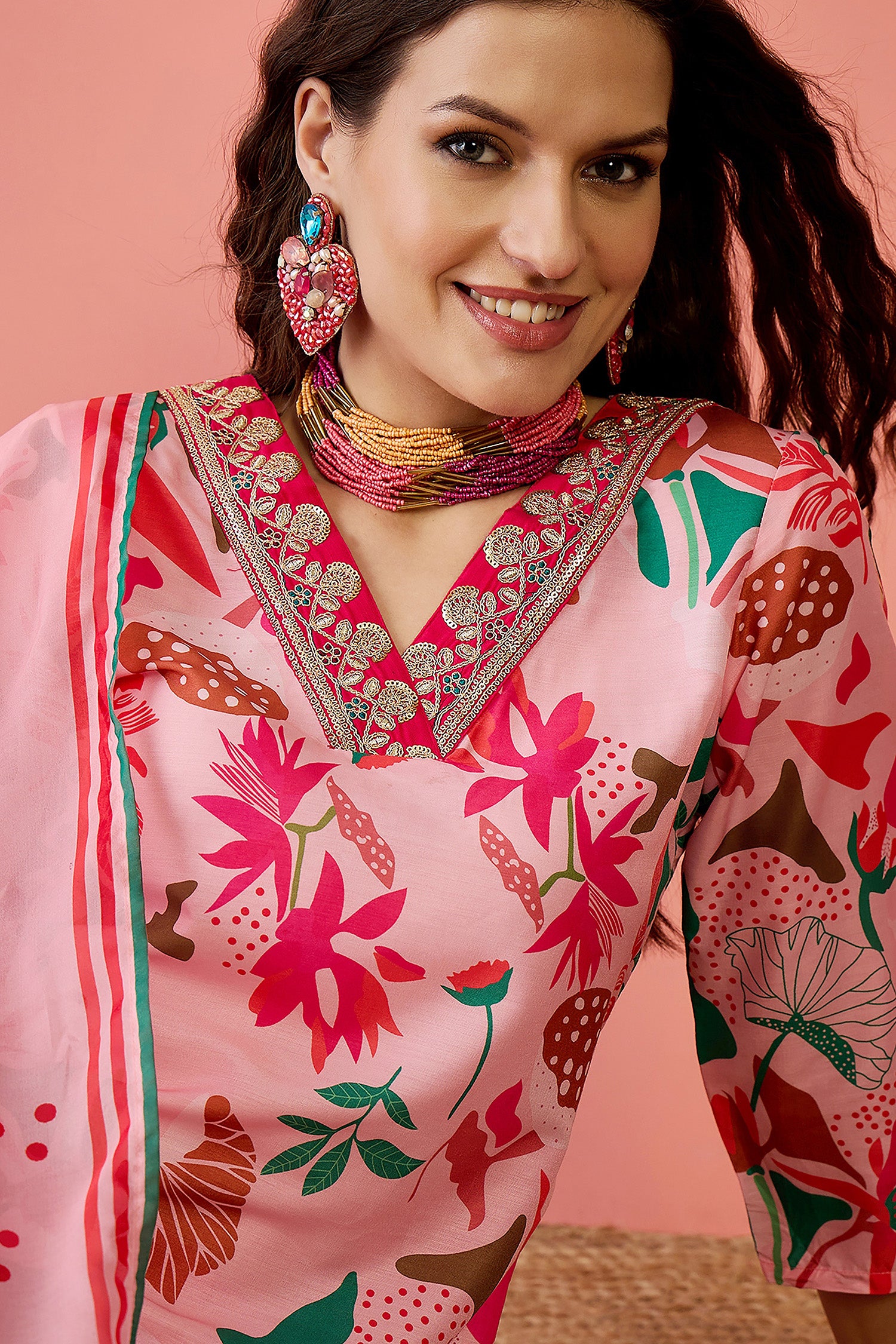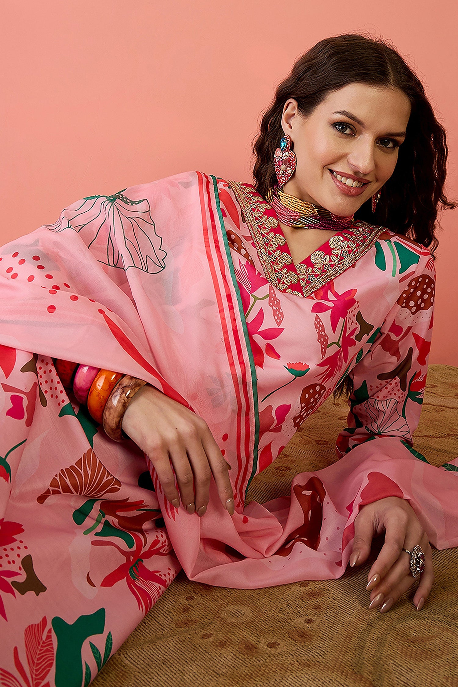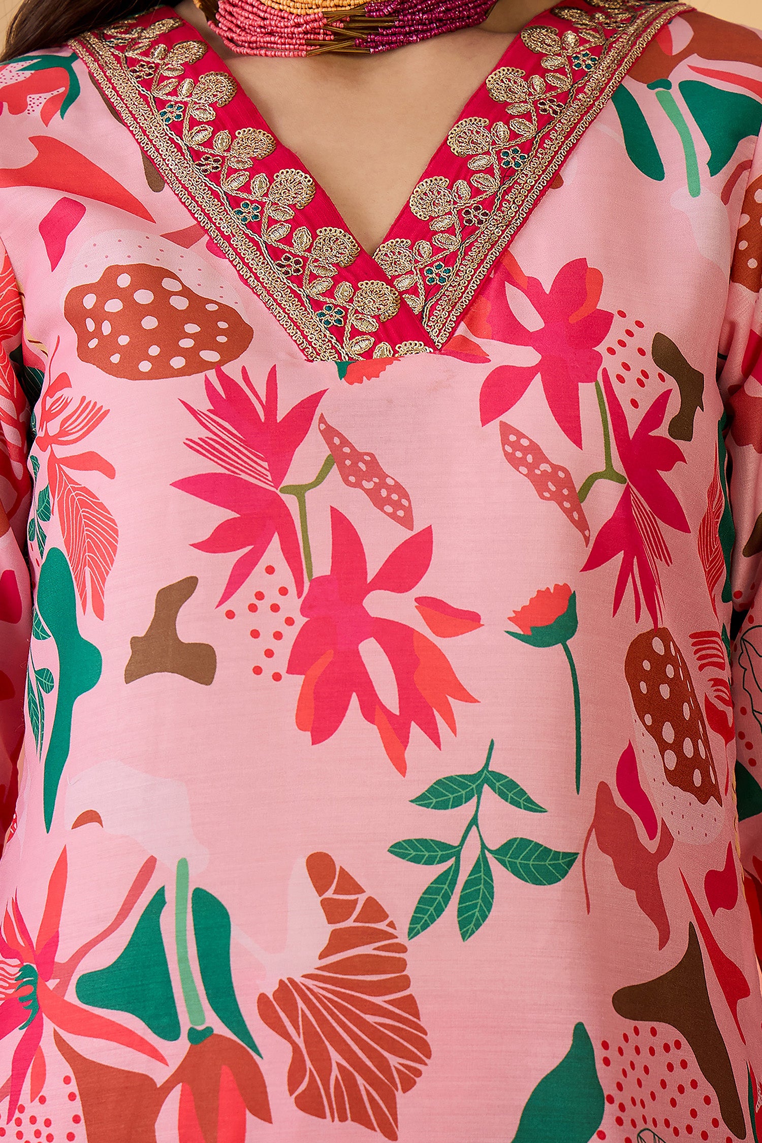 Womens Peach Cotton Blend All Over Printed Ankle Length Straight Kurta And Pant With Dupatta Set