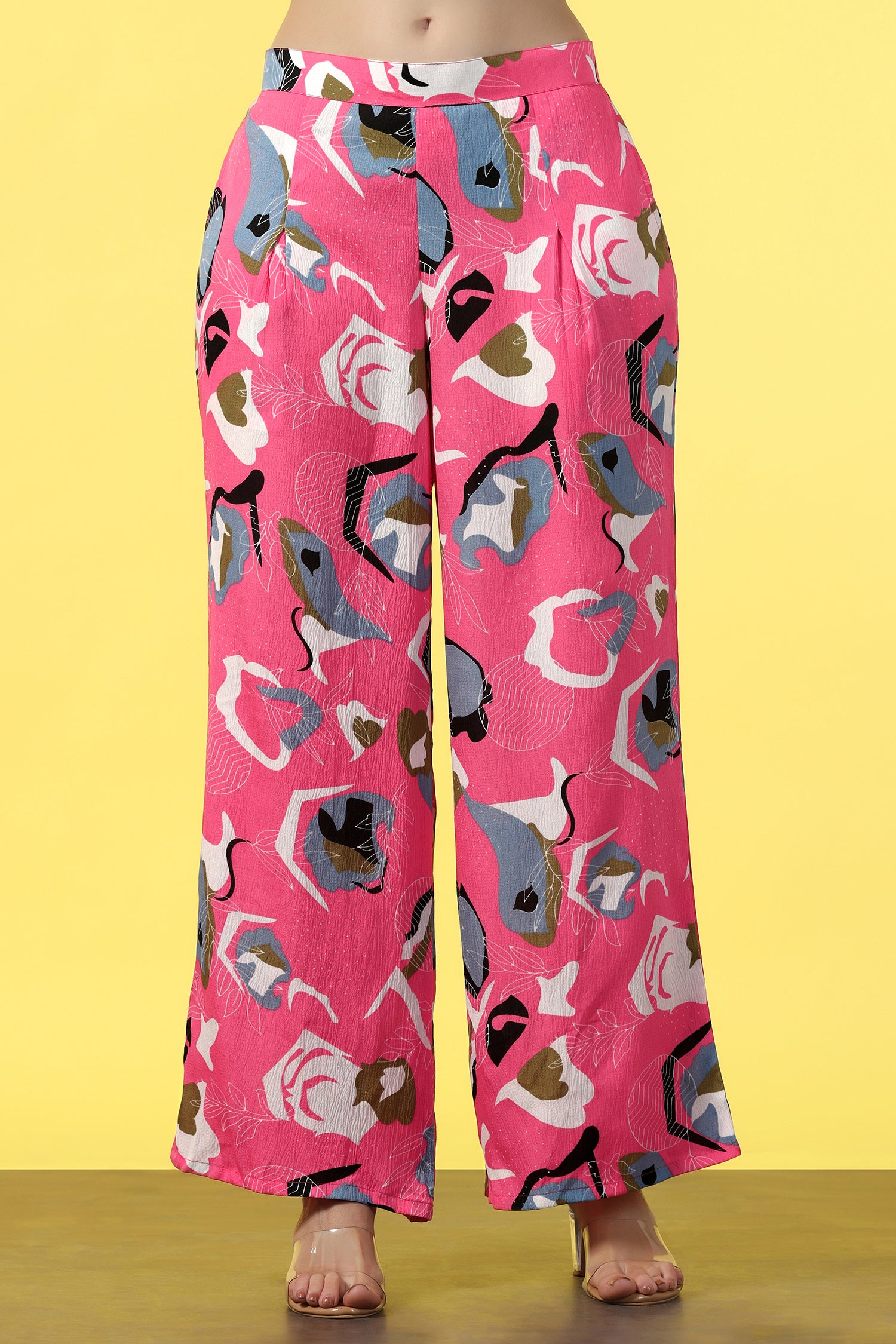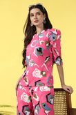 Refresh your wardrobe with this pink colored co-ord set from Fashion Dream. This Style top and pant set completes your look for your outings. Get the perfect blend of elegance and comfort with women’s two-piece co-ord set. This clothing set for women is made from cotton blend fabric that is light and comfortable to wear. The set features abstract printed top having round neck, half puff sleeves, zip along button closure at back to give it a perfect fit. This western wear is designed with passion keeping style, fashion and comfort in mind. The set comes along with a printed pant bottom having two side pockets and partially elasticated waistband for a comfortable fit. Pair it with matching earrings and sandals to complete the casual yet fashionable look. "Note: The accessories and props used in these photoshoots are for aesthetic purposes only and may not be included in the final product or service."