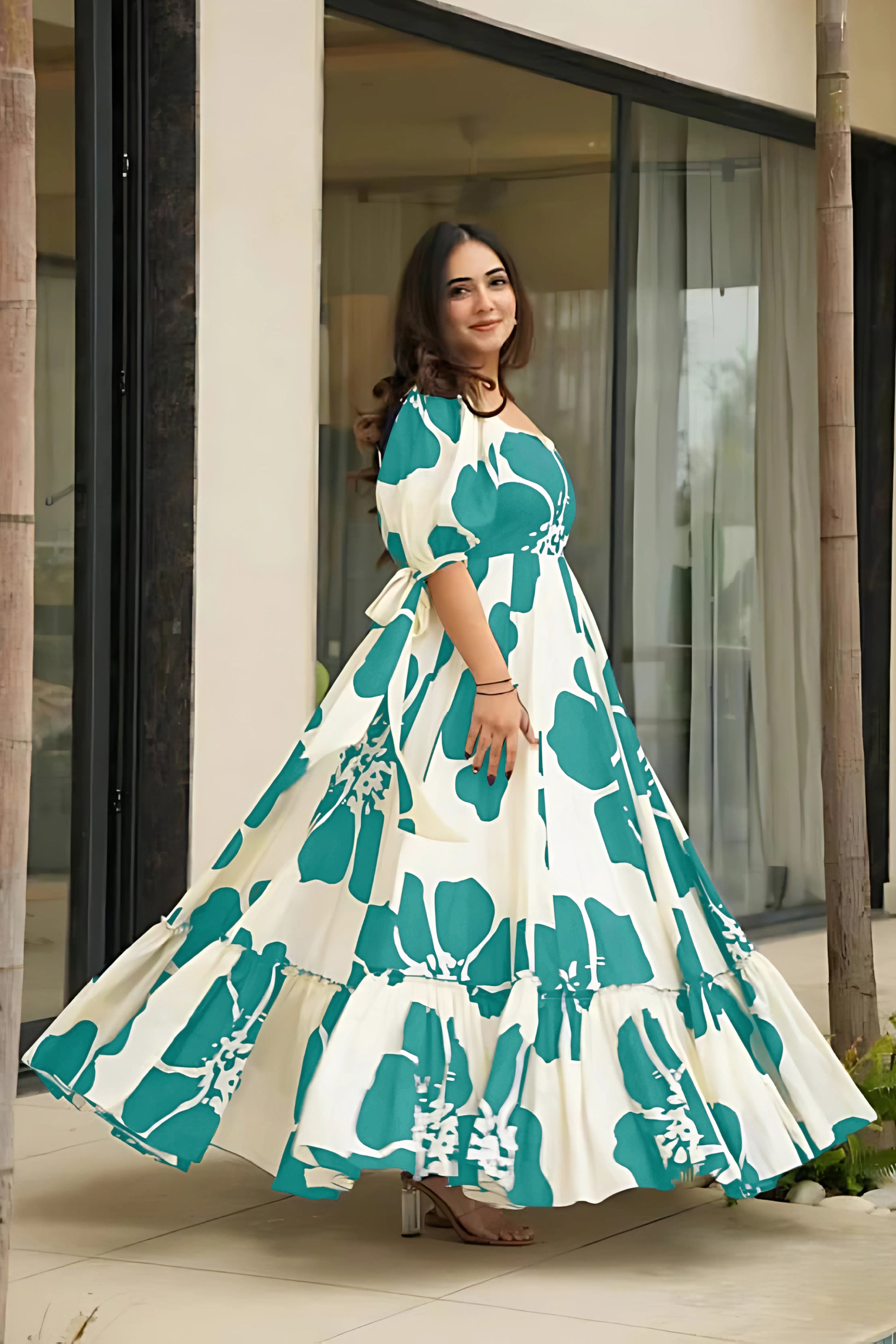 Women's Rama Rayon Floral Printed Maxi length Dress
