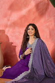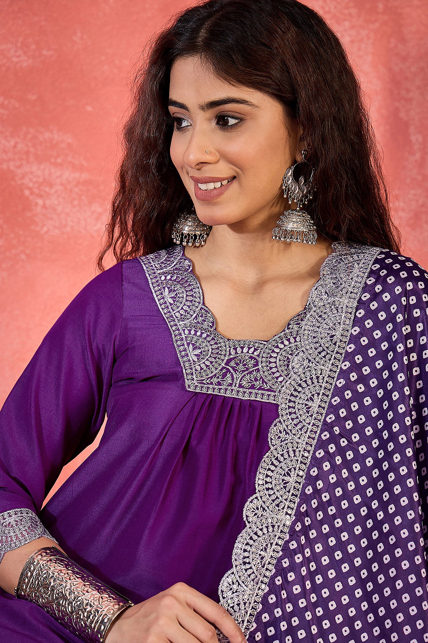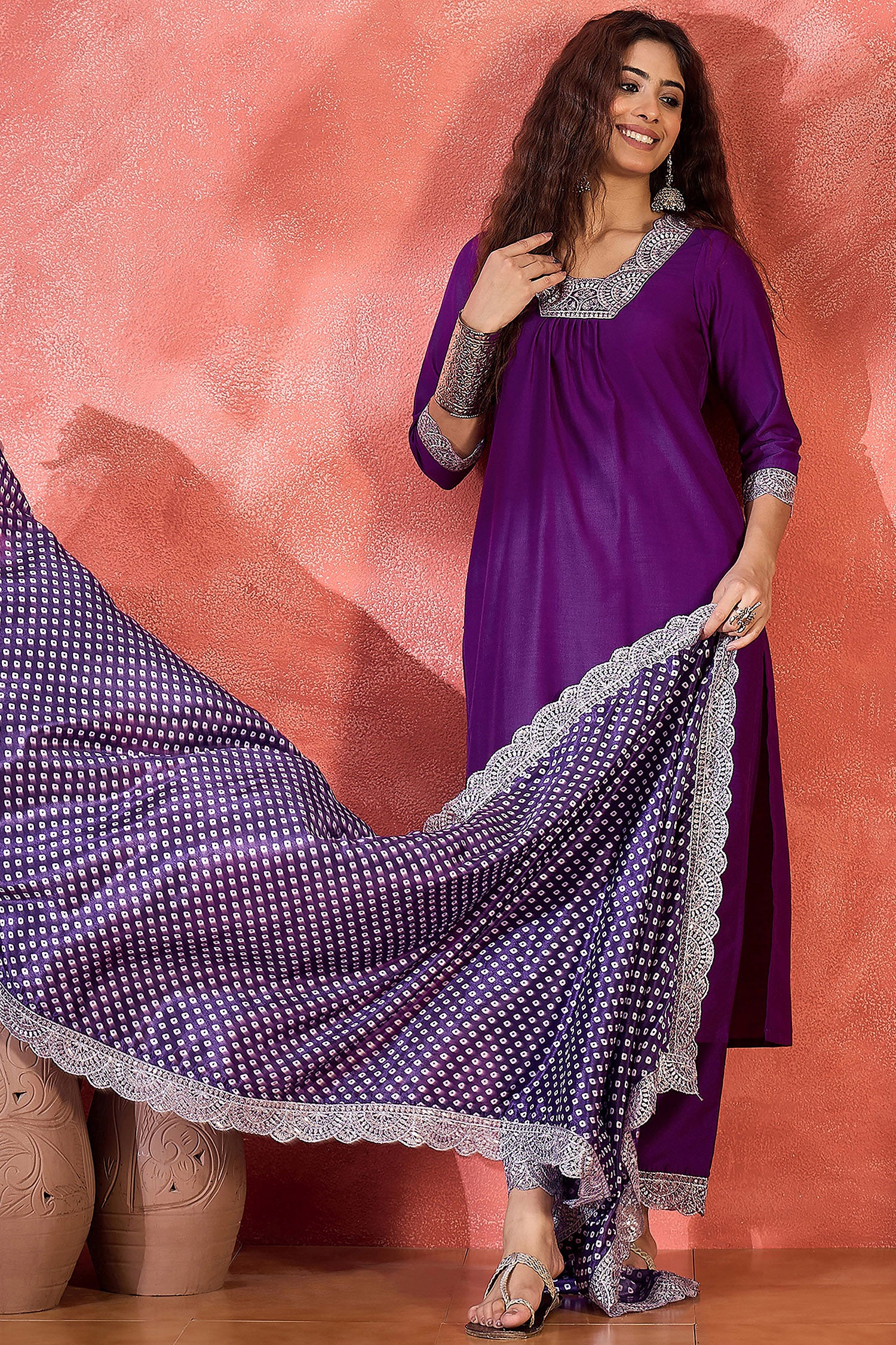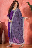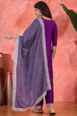 Womens Violet Chinon Silk Embroidered Kurta Set with Dupatta